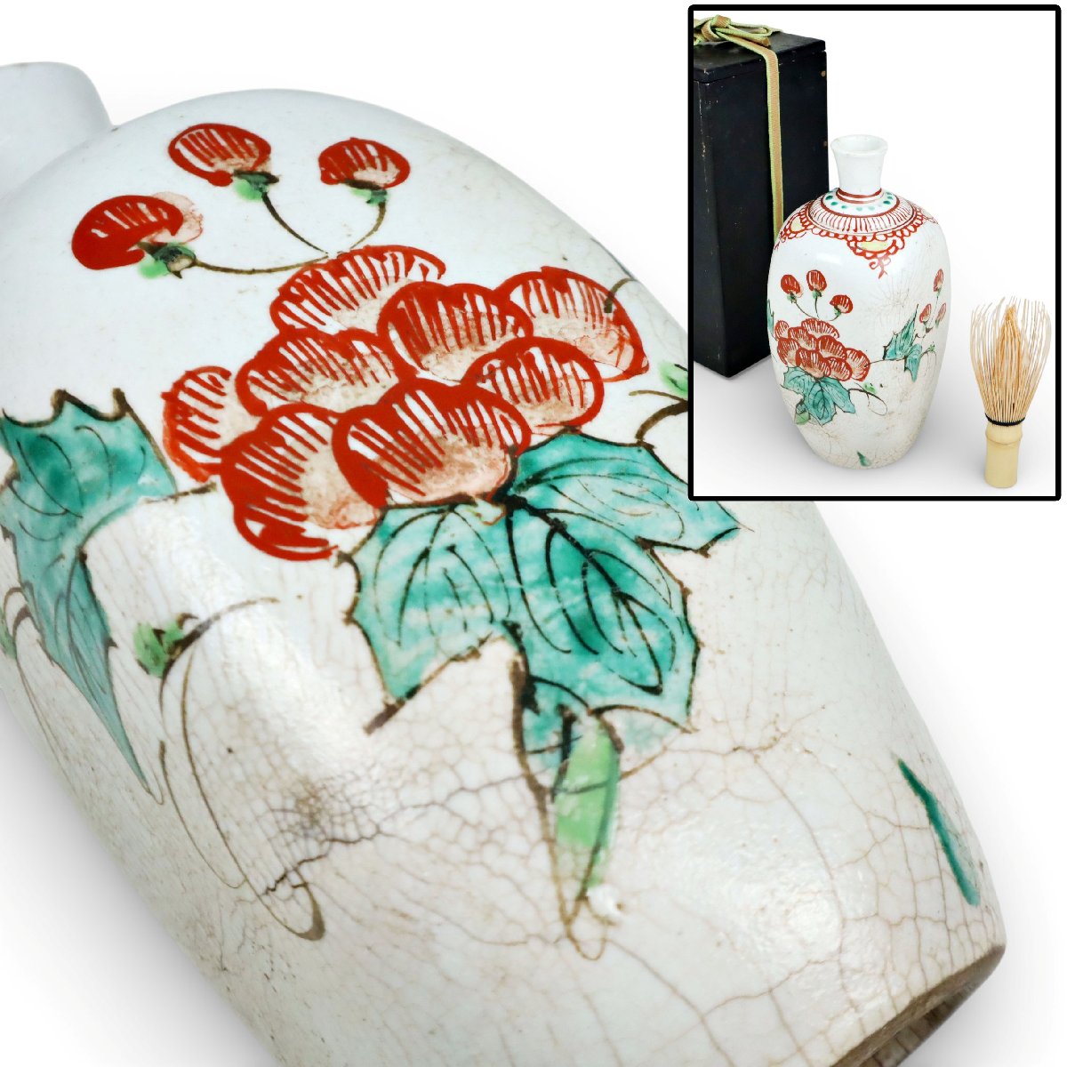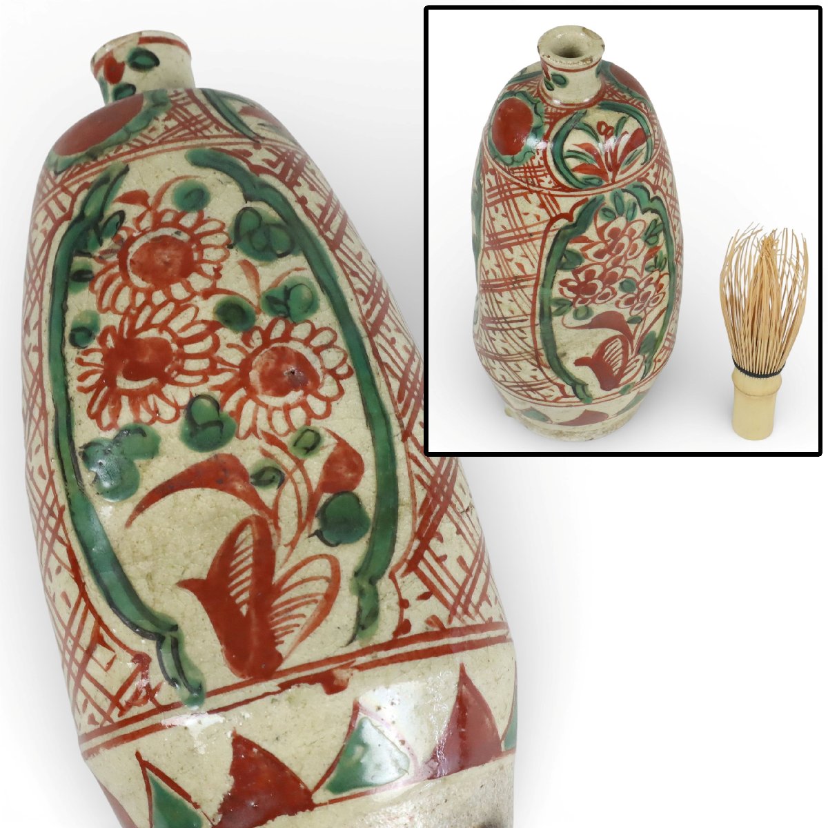 砥部焼 岩谷焼 献上手 赤絵 へこみ徳利 保命酒徳利 鞆徳利