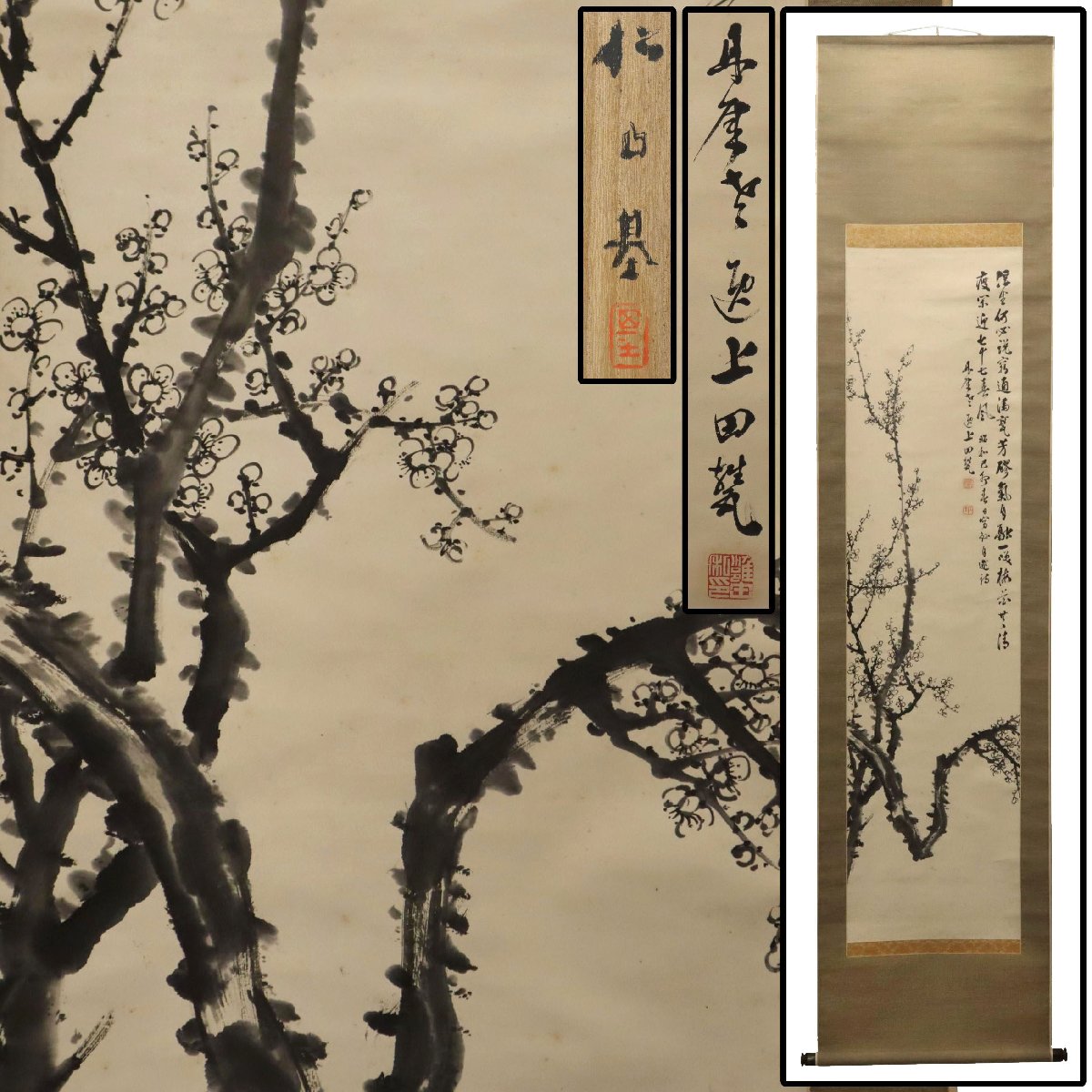 上田丹崖 藤井松山識 喜寿自賀白梅詩書 掛軸
