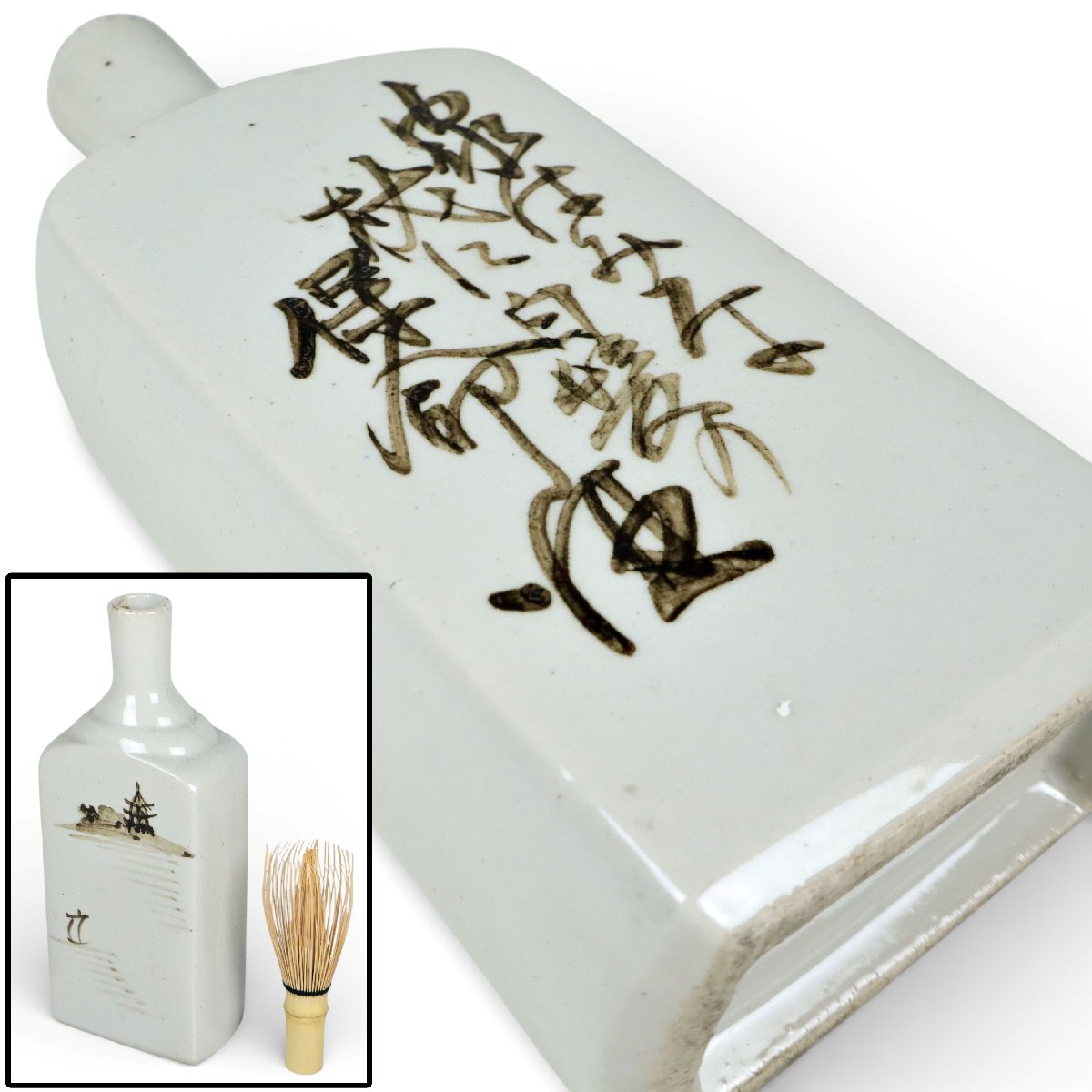 末廣山焼 鉄絵 平角徳利 保命酒徳利 鞆徳利