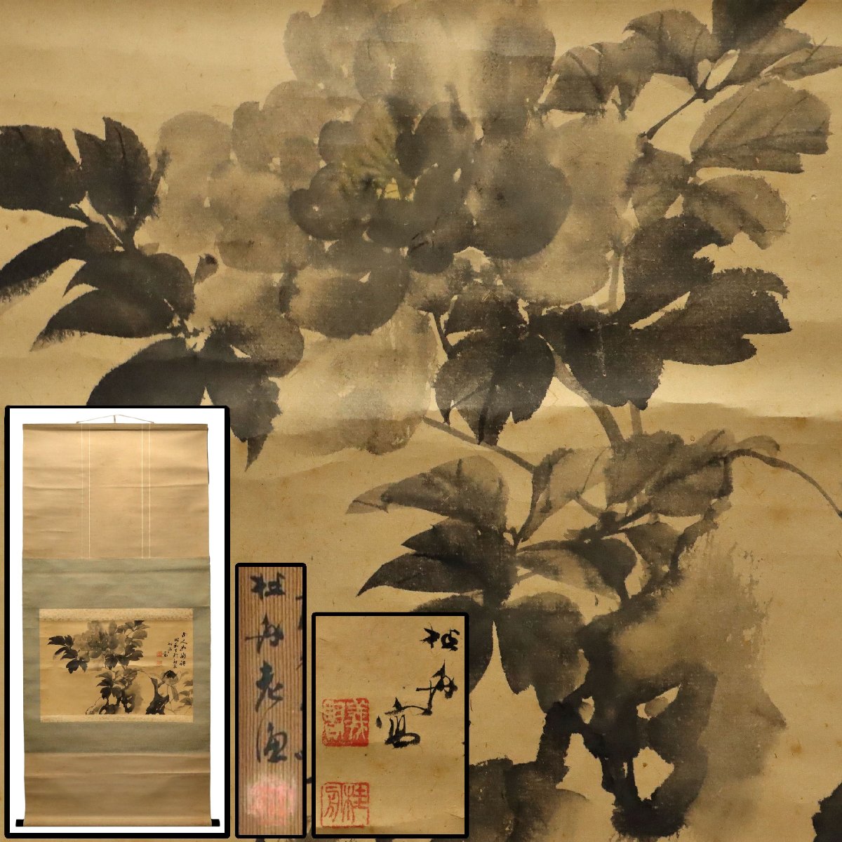 羽田桂舟 水墨牡丹図 掛軸