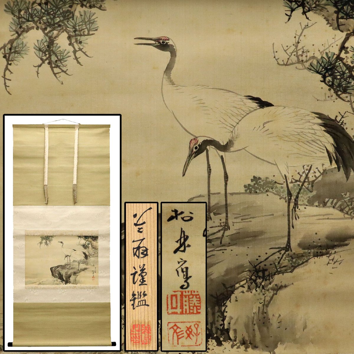 藤井松林 園木冬扇識 双鶴図 掛軸