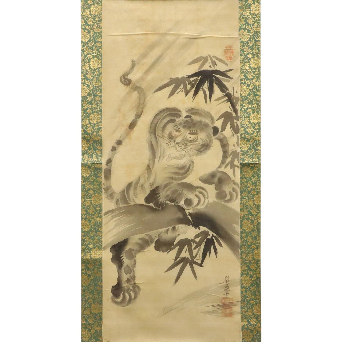 江戸中期の備後国福山藩第2代藩主・阿部正福(正譽)による三幅対の絹本掛軸です。大名自筆と伝わる格調高い筆致は、藩主文化と武家教養の一端を今に伝える貴重な作例。福山藩史を物語る資料性と鑑賞性を兼ね備えた発見性豊かな古美術書画です。