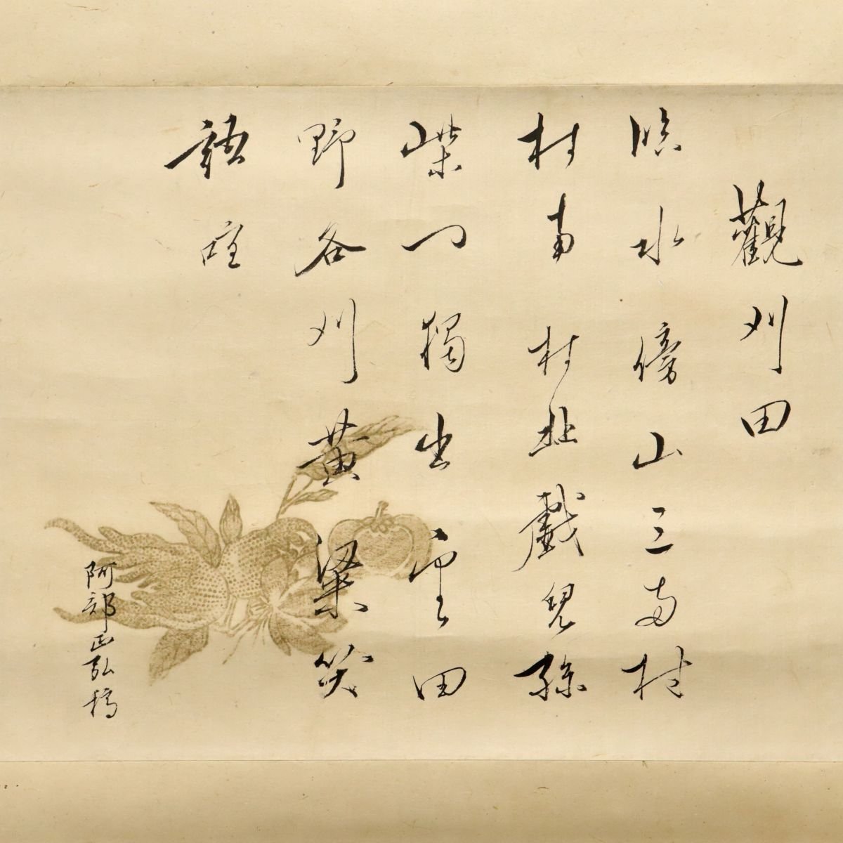 江戸後期の老中首座として知られる備後国福山藩第7代藩主・阿部正弘公による書の掛軸です。幕末政局を担った名君の気品ある筆致が伝わり、歴史的人物の人となりを偲ばせる貴重な一幅。二重箱を備え保存状態にも配慮された、福山藩ゆかりの近世史料として鑑賞性と資料価値を兼ね備えた書画作品です。
