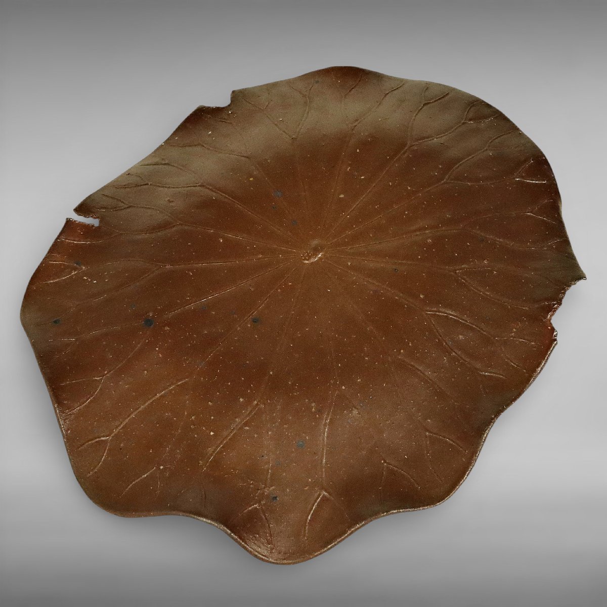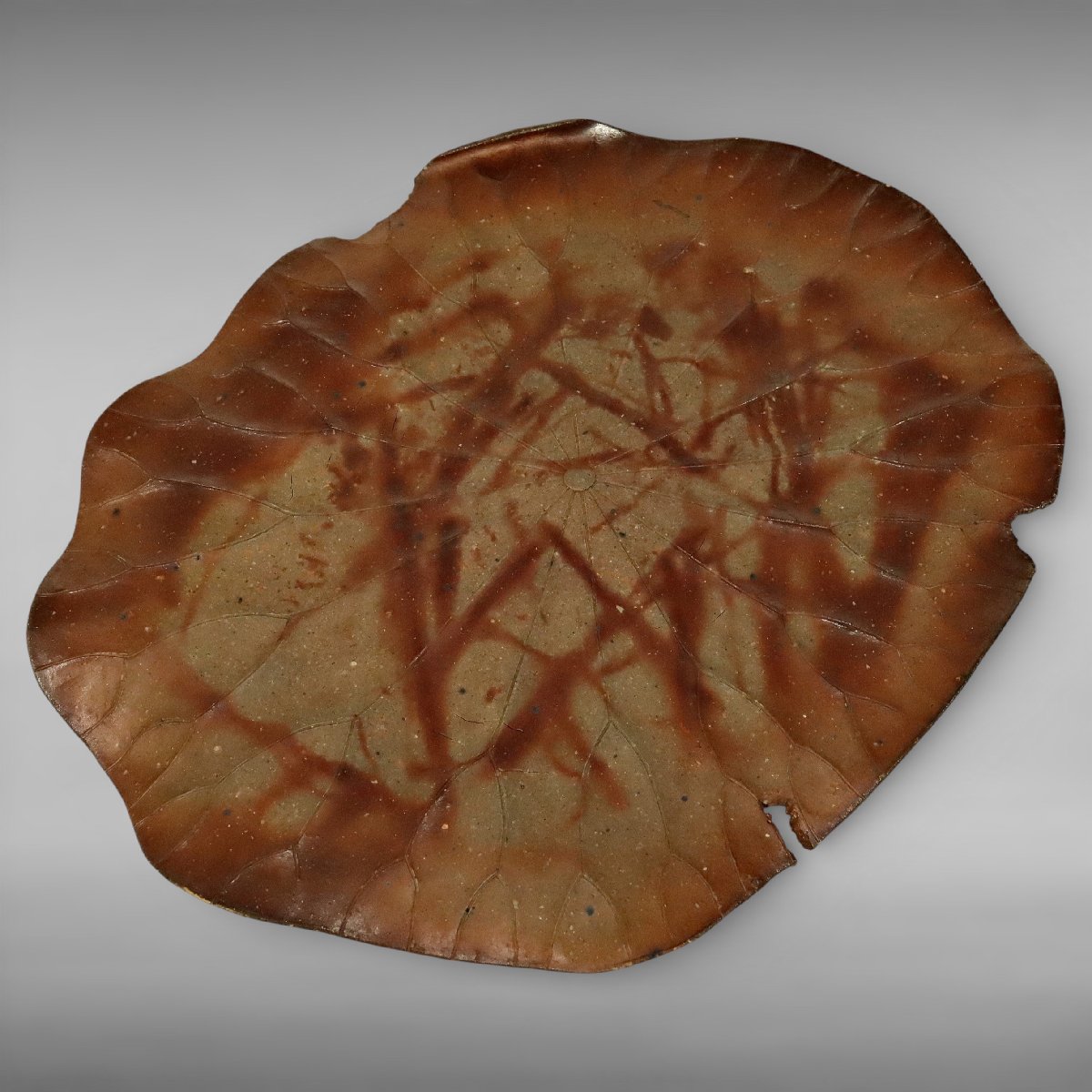 備前焼 桂又三郎識 火襷蓮形菓子器