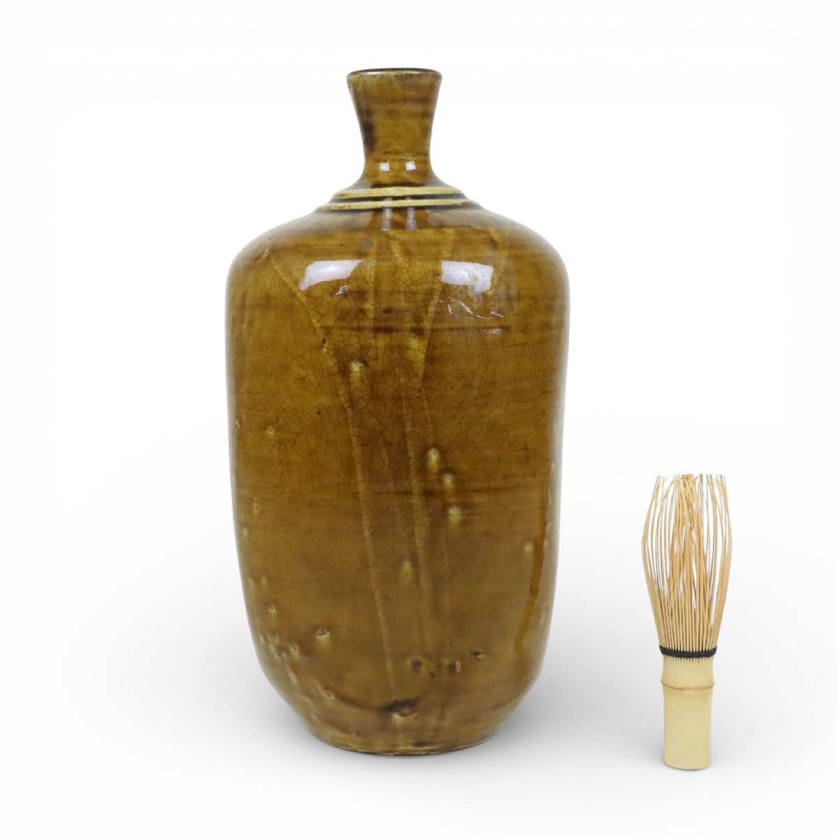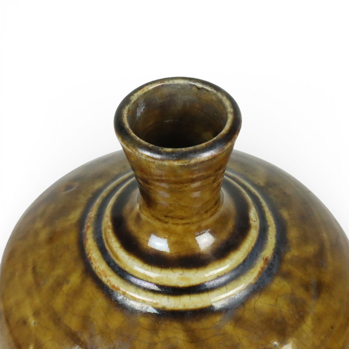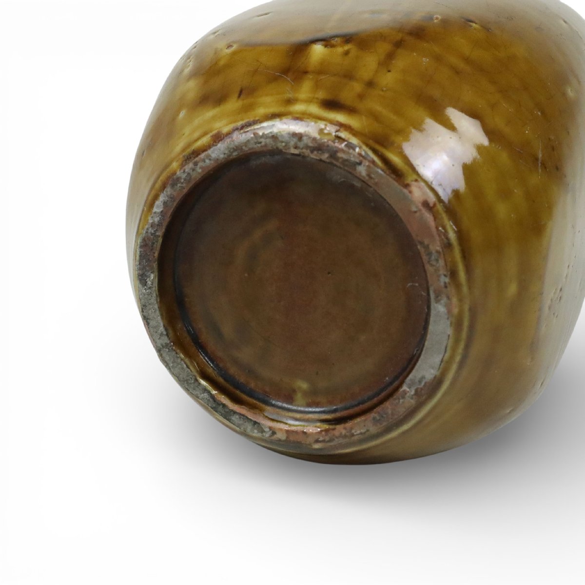 備後・鞆の浦(広島県福山市)ゆかりの江戸後期飴釉・大振り保命酒徳利。通称「鞆徳利」と呼ばれ、艶やかな飴釉と素朴な胴張り形が魅力の酒器陶磁器。海上交易の歴史を映す民窯骨董として高い資料的価値を持ちます。