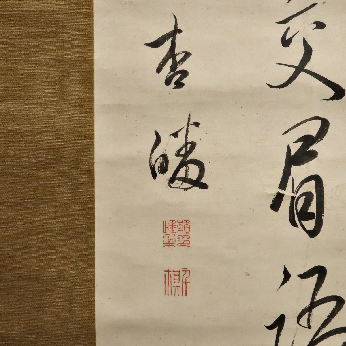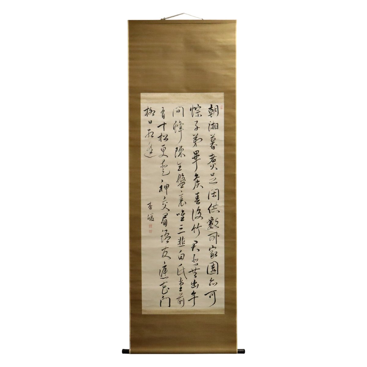 江戸時代の儒学者・頼杏坪による五行書の掛軸です。端正で格調ある筆致に学識の深さがにじみ、紙本ならではの時代の趣も魅力。箱付で伝来も楽しめる備後ゆかりの書画として蒐集価値ある一幅です。