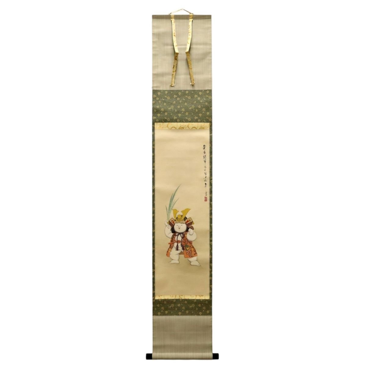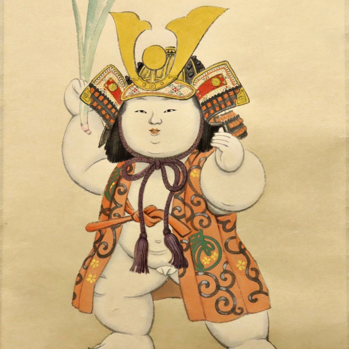 備後ゆかりの画家・藤井延年による最上手「兜人形図」紙本掛軸です。端午の節句を象徴する兜人形を格調高い筆致で丁寧に描き上げ、武運長久や健やかな成長の願いを伝える縁起の良い一幅。共箱付で来歴も明確、季節掛としても楽しめる郷土美術の魅力あふれる鑑賞性と資料性を兼ね備えた骨董掛軸です。