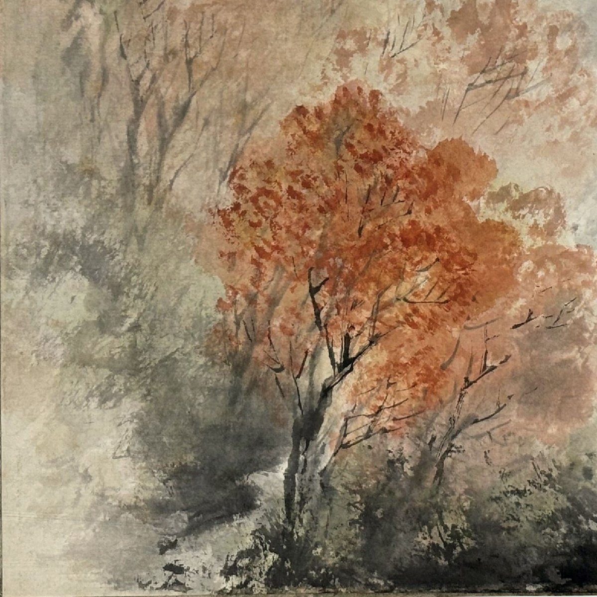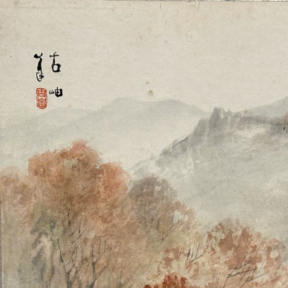 備後出身の書家・藤井松山による松の木図の掛軸です。力強く伸びやかな筆致で描かれた松は長寿や吉祥の象徴としても親しまれ、文人画らしい清雅な気韻が漂う一幅。紙本ならではの素朴な墨趣も魅力で、近代備後文人文化の精神性を今に伝える蒐集価値ある書画作品です。