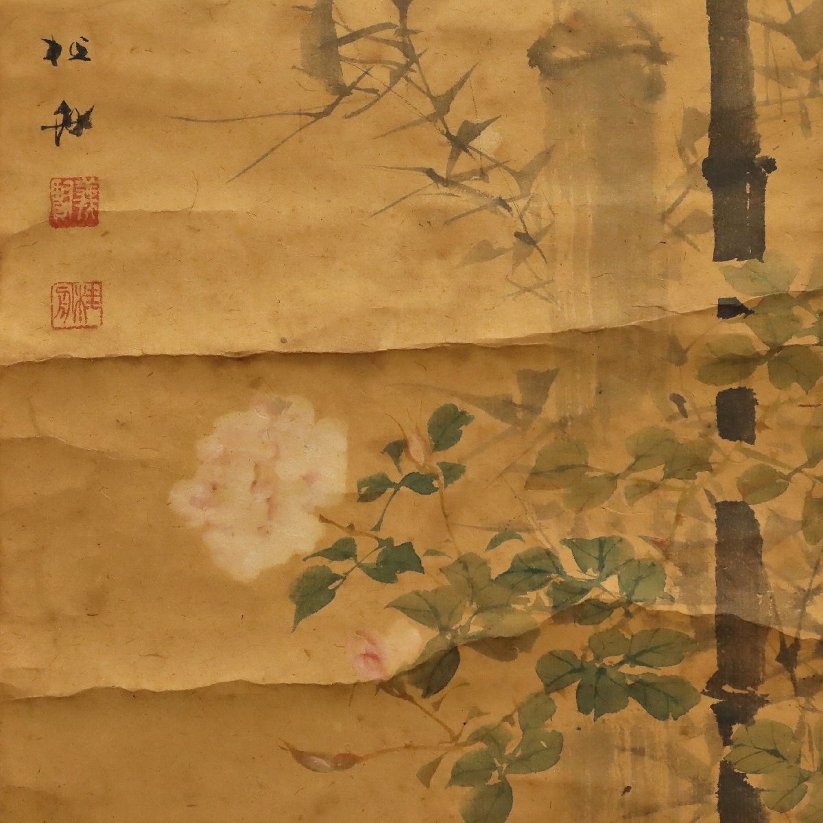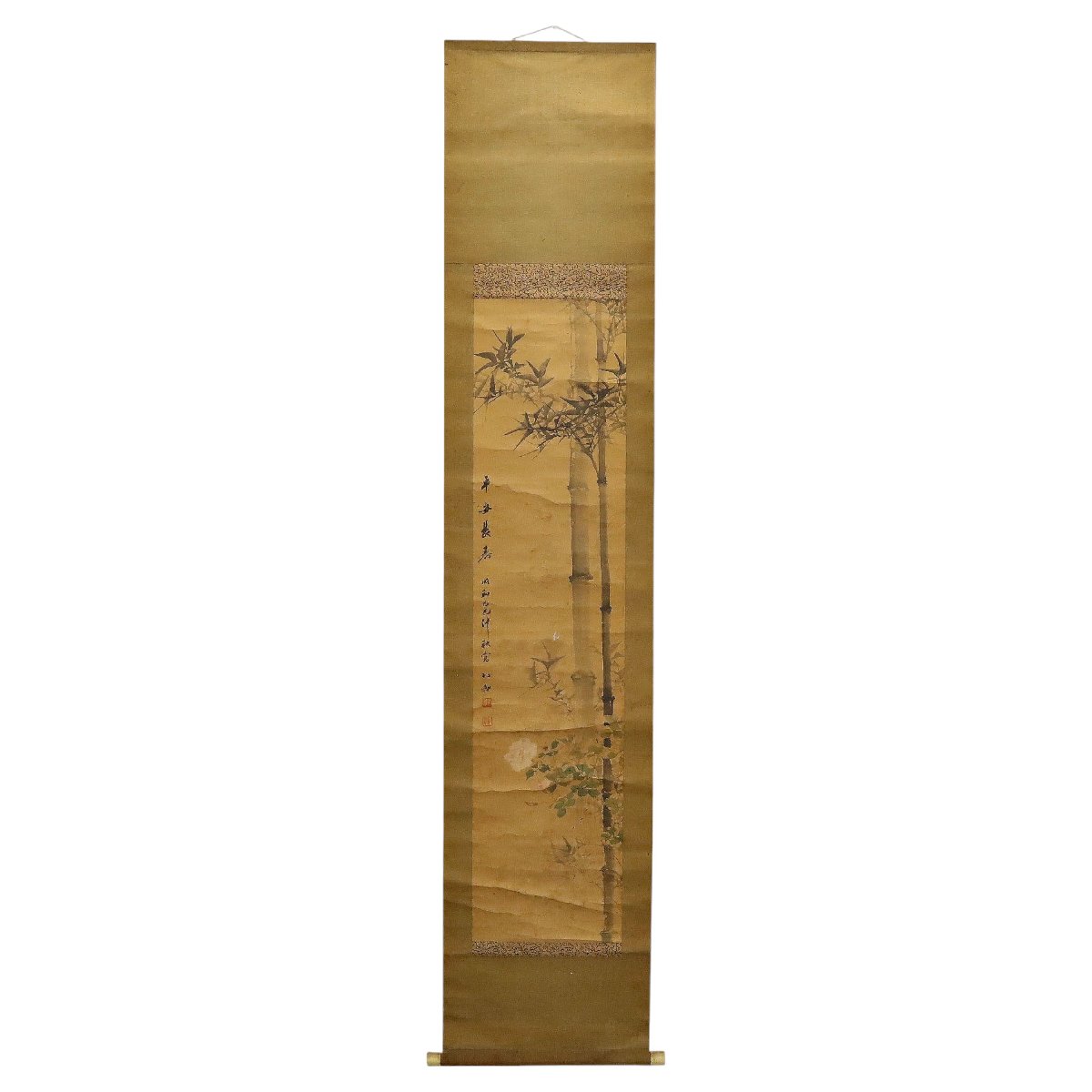 羽田桂舟 竹に花図 掛軸