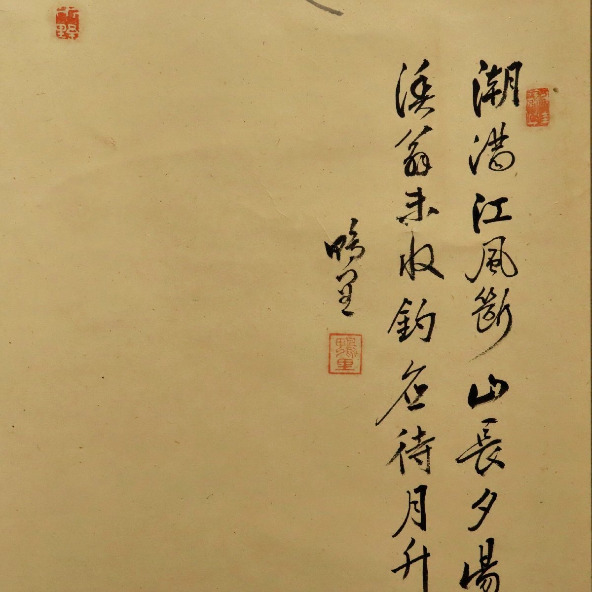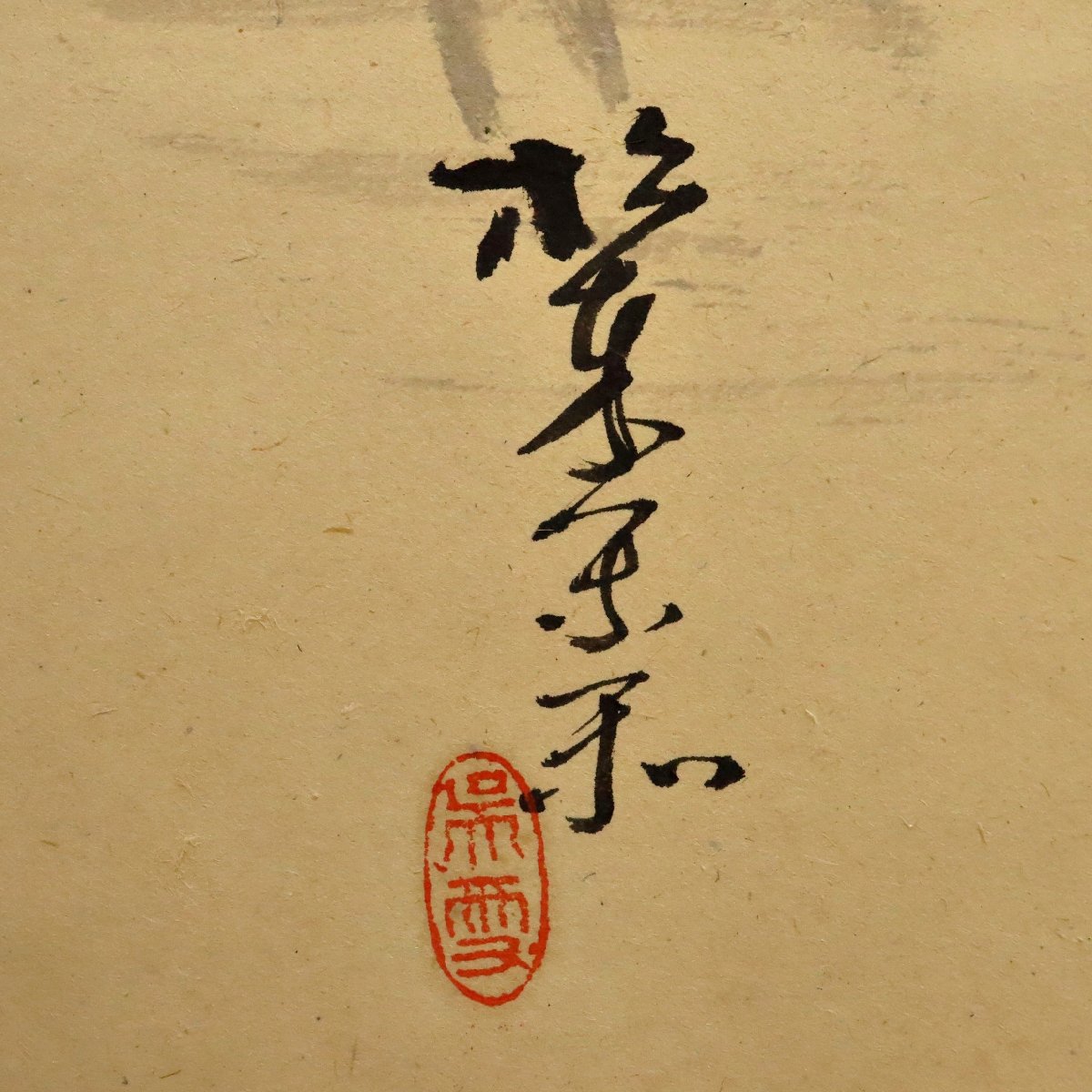 備後ゆかりの漢学者・平川鴨里による画賛の掛軸です。格調ある筆致に文人の気韻が感じられ、紙本の趣と箱付の伝来が作品の魅力を高めます。備後福山周辺の文人文化を伝える蒐集価値ある一幅です。