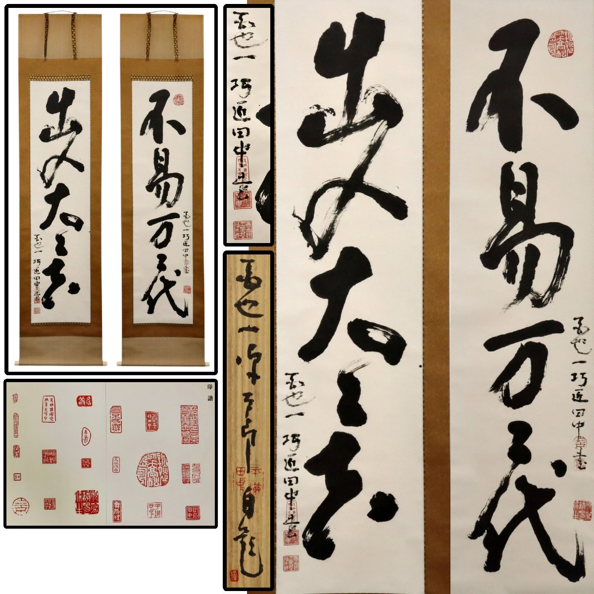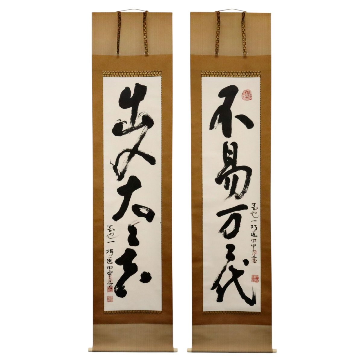 平櫛田中 双幅 萬代不易 出入大吉 掛軸