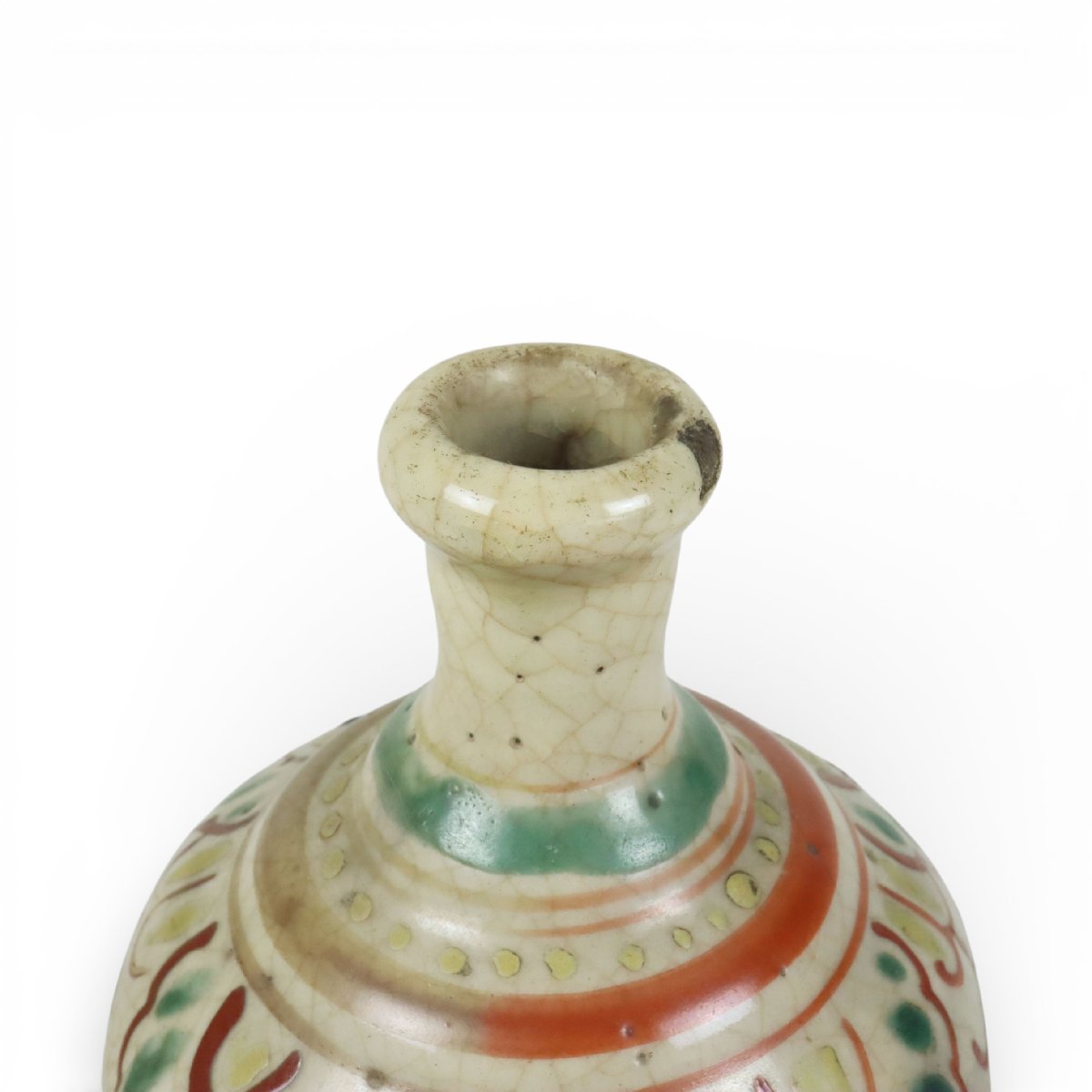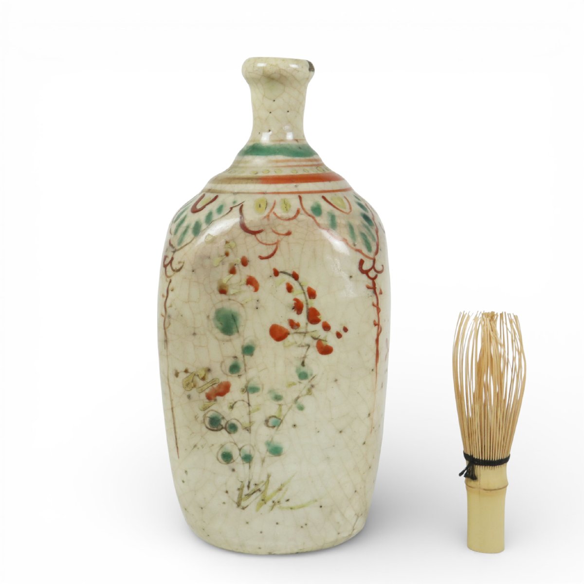 江戸後期の岩谷焼「華蟲文保命酒徳利」は、備後・鞆の浦に伝わる鞆徳利の希少な一作です。器面に華蟲文を配し、素朴な岩谷焼の土味と装飾性が調和。保命酒文化を支えた実用酒器でありながら意匠性も高く、港町の美意識を今に伝える骨董陶磁器です。