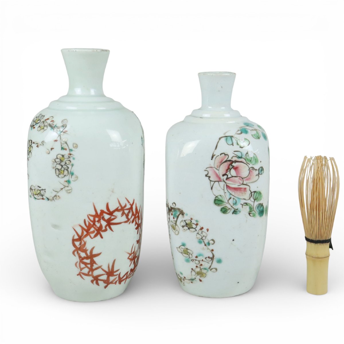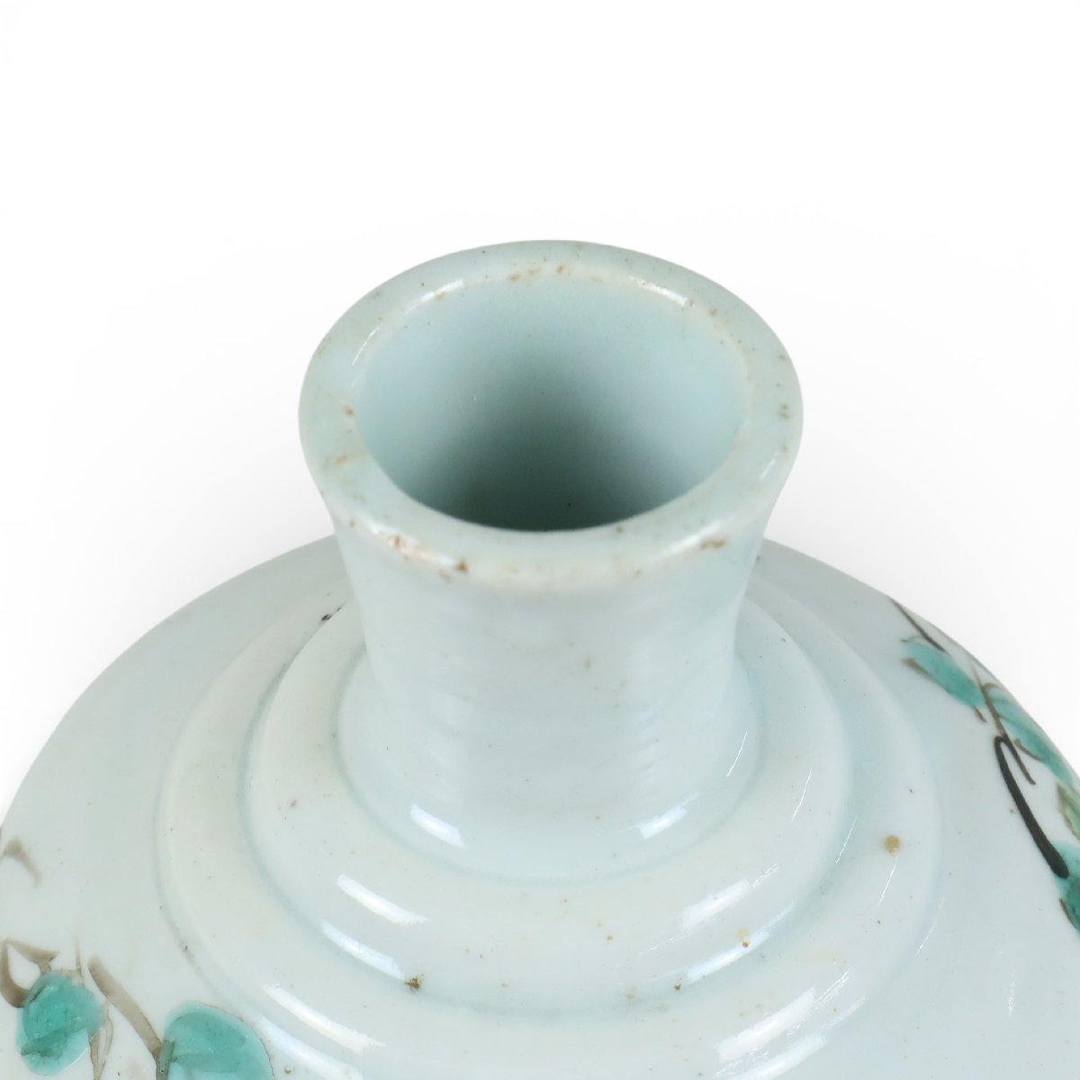 江戸後期、備後・鞆の浦で焼かれた岩谷焼の丸紋保命酒徳利、大小一対。端正な器形に配された丸紋が格調を添え、港町鞆の繁栄を今に伝えます。鞆徳利として珍重された歴史を持つ酒器で、観賞性と資料性を兼ね備えた古陶磁の逸品です。