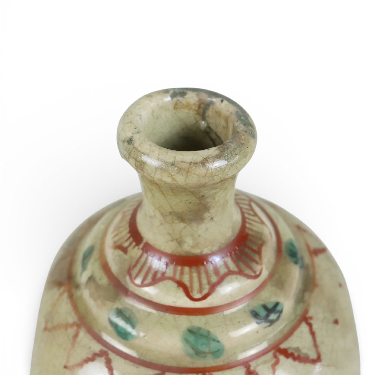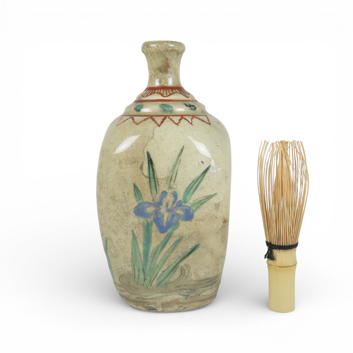 江戸後期、広島県福山市・鞆の浦で焼かれた岩谷焼の菖蒲文保命酒徳利です。備後名産の保命酒を収める鞆徳利は、端正な器形に菖蒲文が優雅に描かれ、地方窯の技巧と港町文化の趣を今に伝える趣深い酒器です。