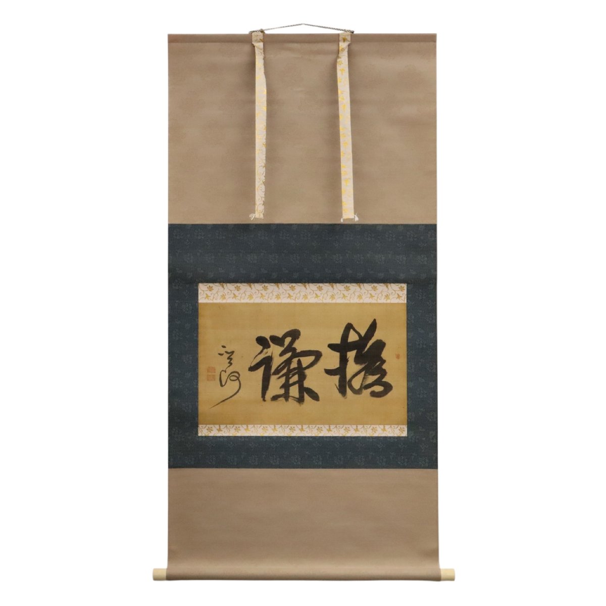 江戸時代後期の儒学者で備後・神辺(現・福山市)ゆかりの文人菅茶山による絹本書掛軸です。箱付で来歴も感じられ、端正で格調高い筆致に学識と精神性が色濃く表れた一幅。郷土史資料としても注目される発見性豊かな備後書画の逸品です。