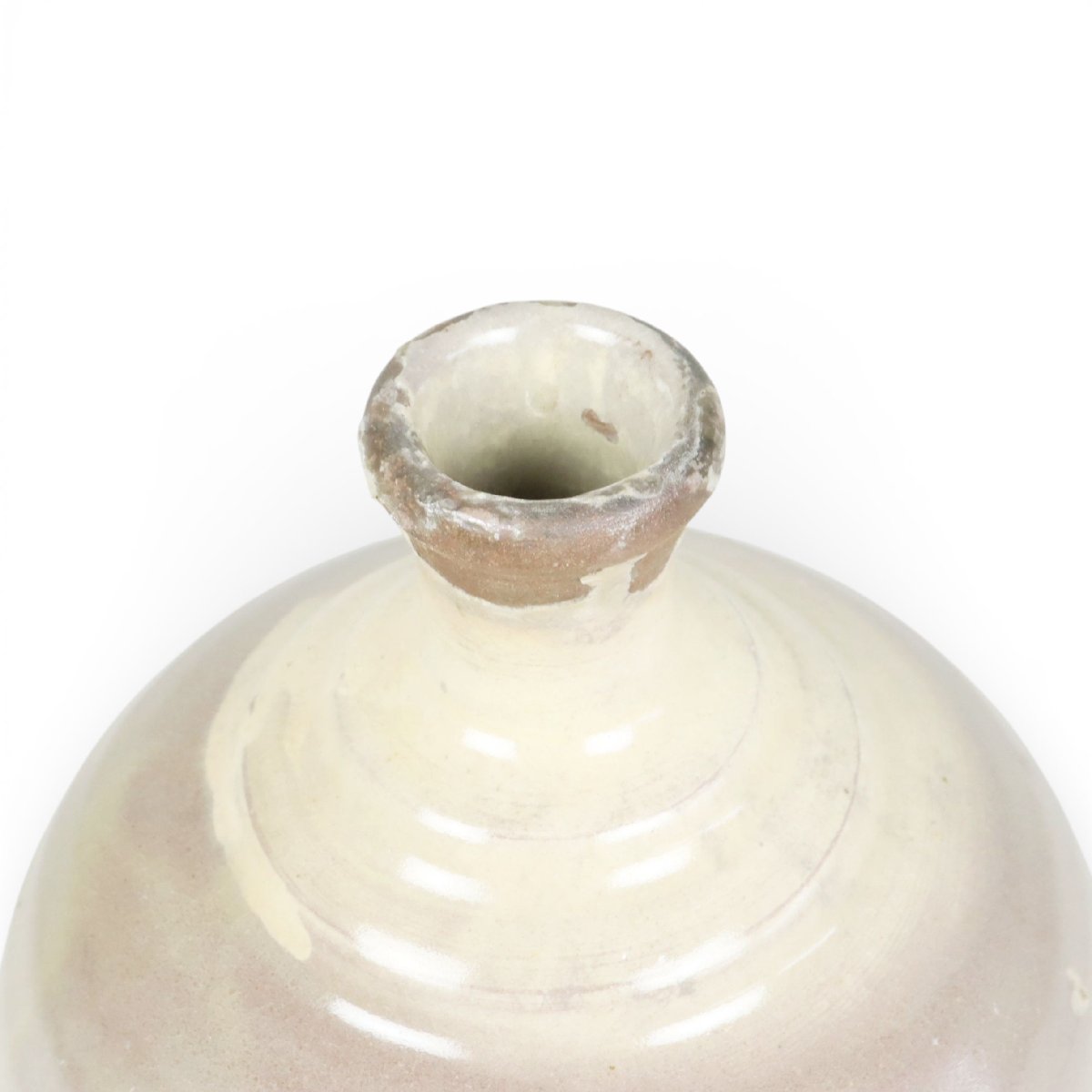 幕末〜明治期、備後・鞆の浦(広島県福山市)木之庄焼による大振り保命酒徳利(鞆徳利)。港町の酒文化を映す素朴な胎土と力強い造形が魅力の酒器陶磁器。民芸性高く、骨董・古美術コレクションにも好適な希少品です。コレクター向けとしても人気の高い逸品です。