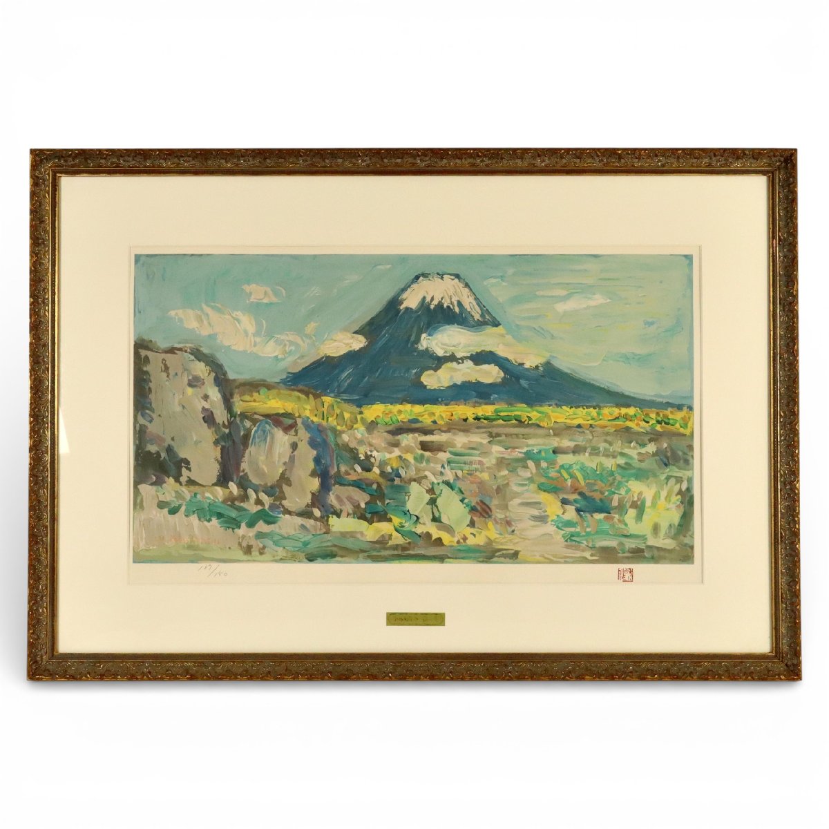 尾道市を拠点に活動した洋画の巨匠小林和作による「富士」リトグラフ作品です。限定137/150、約33×60cmの堂々とした画面に力強く表現された富士の姿が印象的。郷土洋画の重鎮による発見性豊かな備後ゆかりの美術作品として注目したい佳品です。