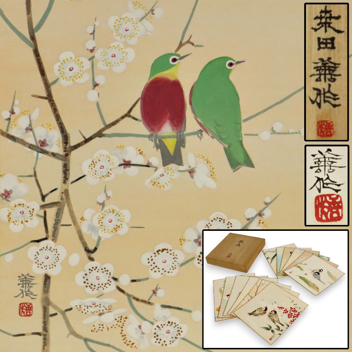 備後(広島県福山市)ゆかりの画家・桒田善作による「花鳥12ヶ月」色紙画の作品。四季折々の花鳥等を簡潔な筆致で描き、季節感と自然美を凝縮した構成が魅力です。共箱付きで保存性も良好、郷土画としての資料価値も高く、骨董美術として収蔵・鑑賞に適した一品です。