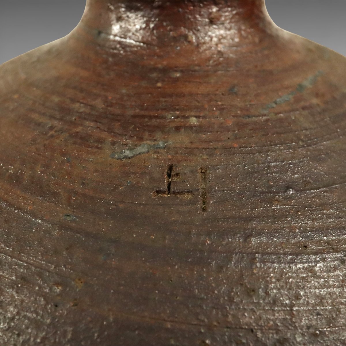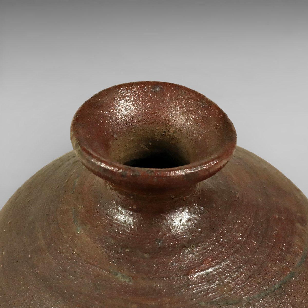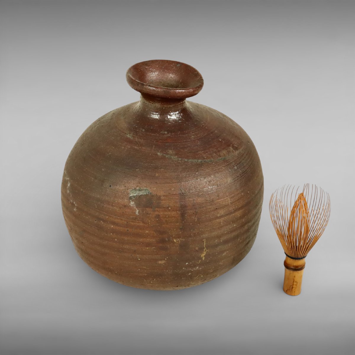桃山期に焼成された古備前の蕪徳利は、岡山県備前市周辺の窯による素朴で力強い造形が魅力の古陶です。胴の張りと窯印が時代の風格を伝え、酒器としてはもちろん花入としても映える、桃山古備前の趣深い佳品です。