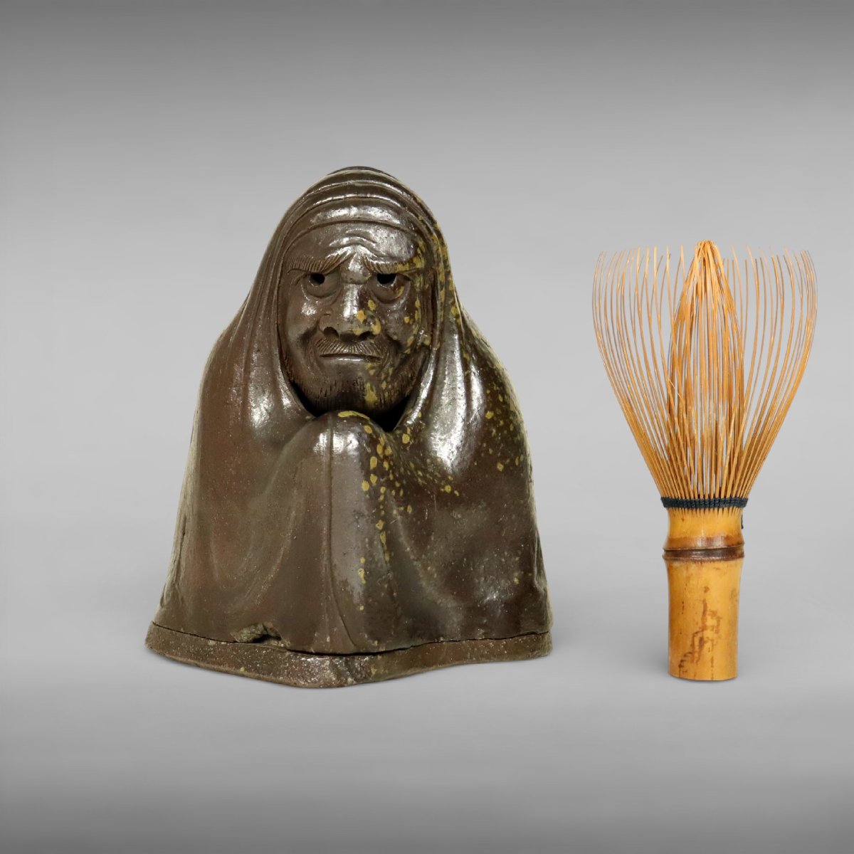 桃山期の古備前による達磨形香炉です。岡山県備前市伊部に連なる古備前特有の力強い土味と風格ある造形が際立つ大名品で、多数図録掲載・香合所載品として知られる優品。桂又三郎識箱を伴い伝来も確かな、香道具として蒐集価値の高い逸品です。