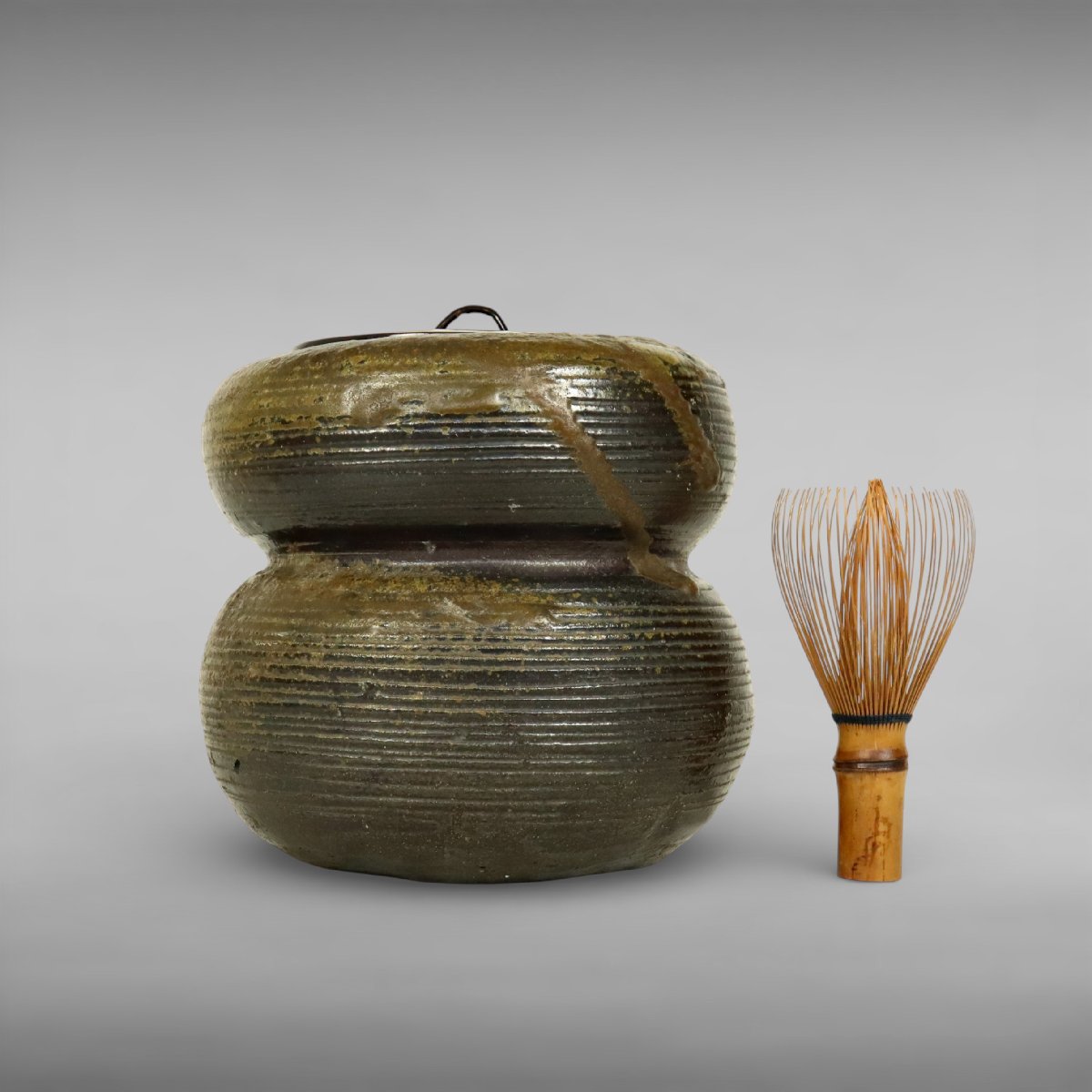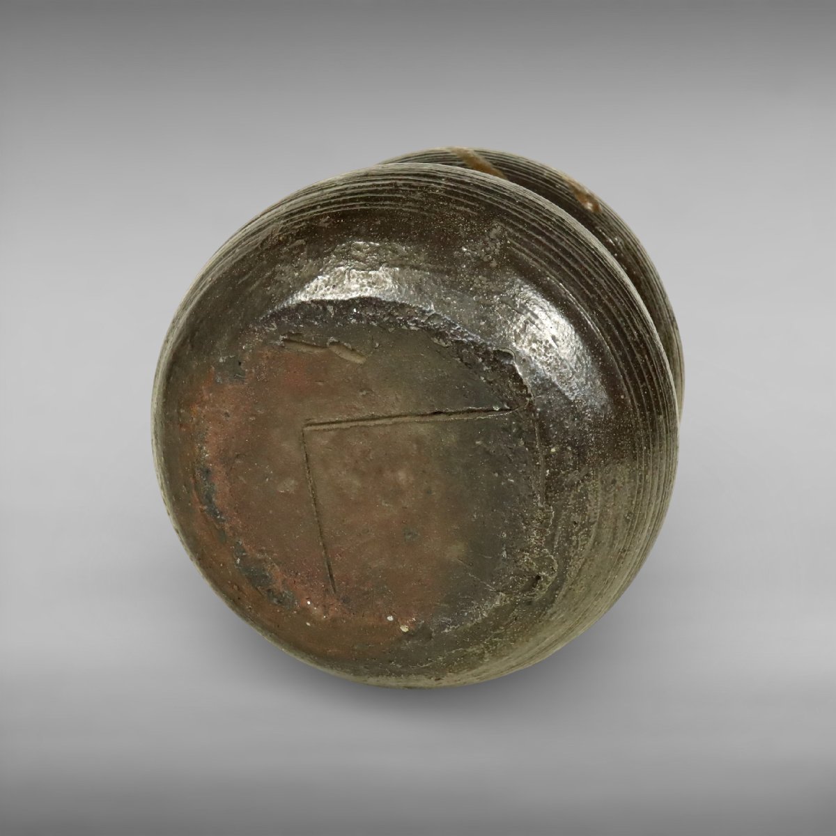 室町期に岡山県備前市周辺で焼成された古備前の水指です。無釉焼締による素朴で力強い土味と自然釉の景色が中世古備前の風格を伝え、茶道具・煎茶道具として格調ある存在感を備えた逸品。古備前研究にも適した発見性の高い古陶磁です。