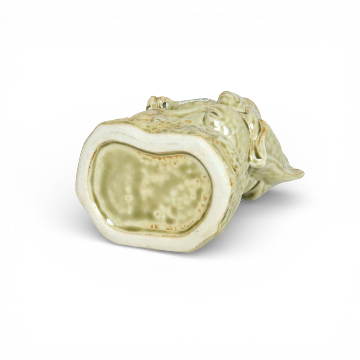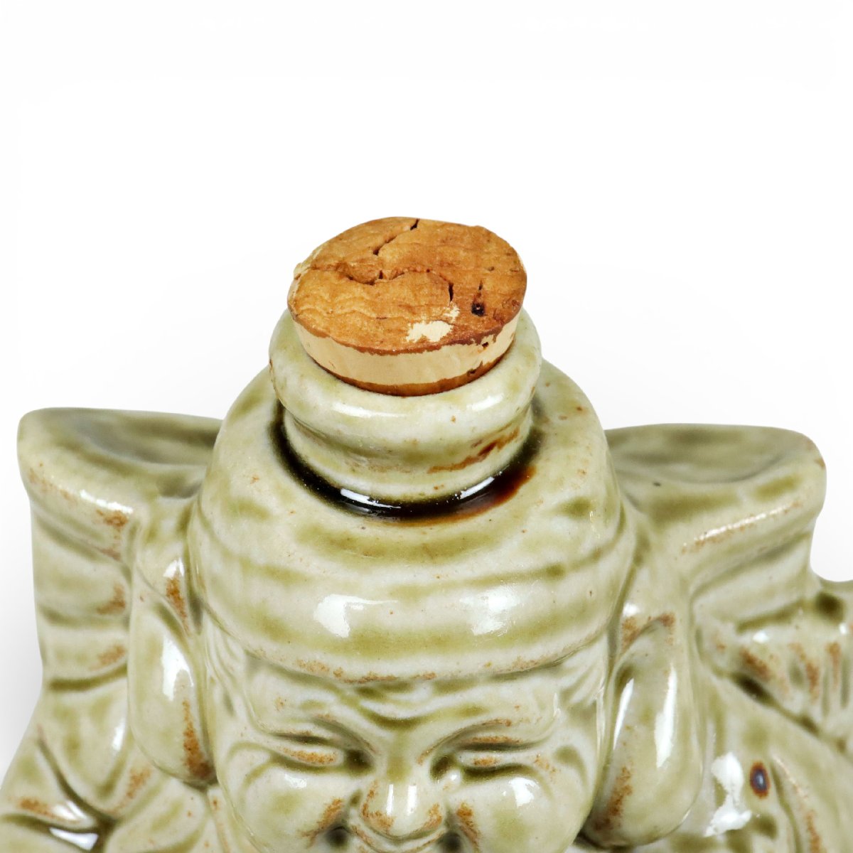 近代の本家保命酒屋 岡本亀太郎本店による恵比寿天型の保命酒徳利は、備後・鞆の浦に伝わる鞆徳利の流れを汲む酒器です。福徳の神・恵比寿天の意匠が特徴で、保命酒文化と商家の歴史を今に伝えます。素朴な陶質と近代商標の趣が調和した骨董陶磁器です。