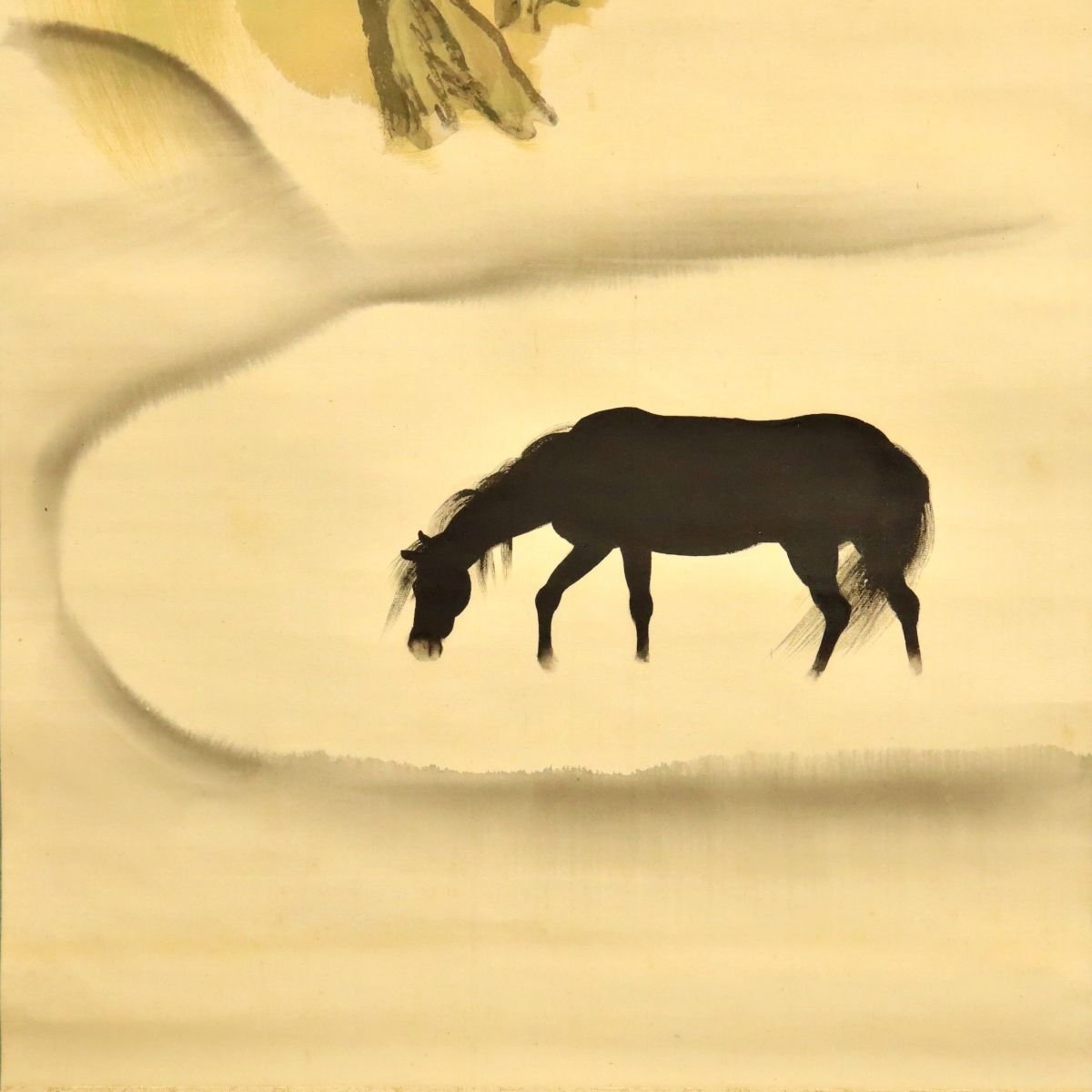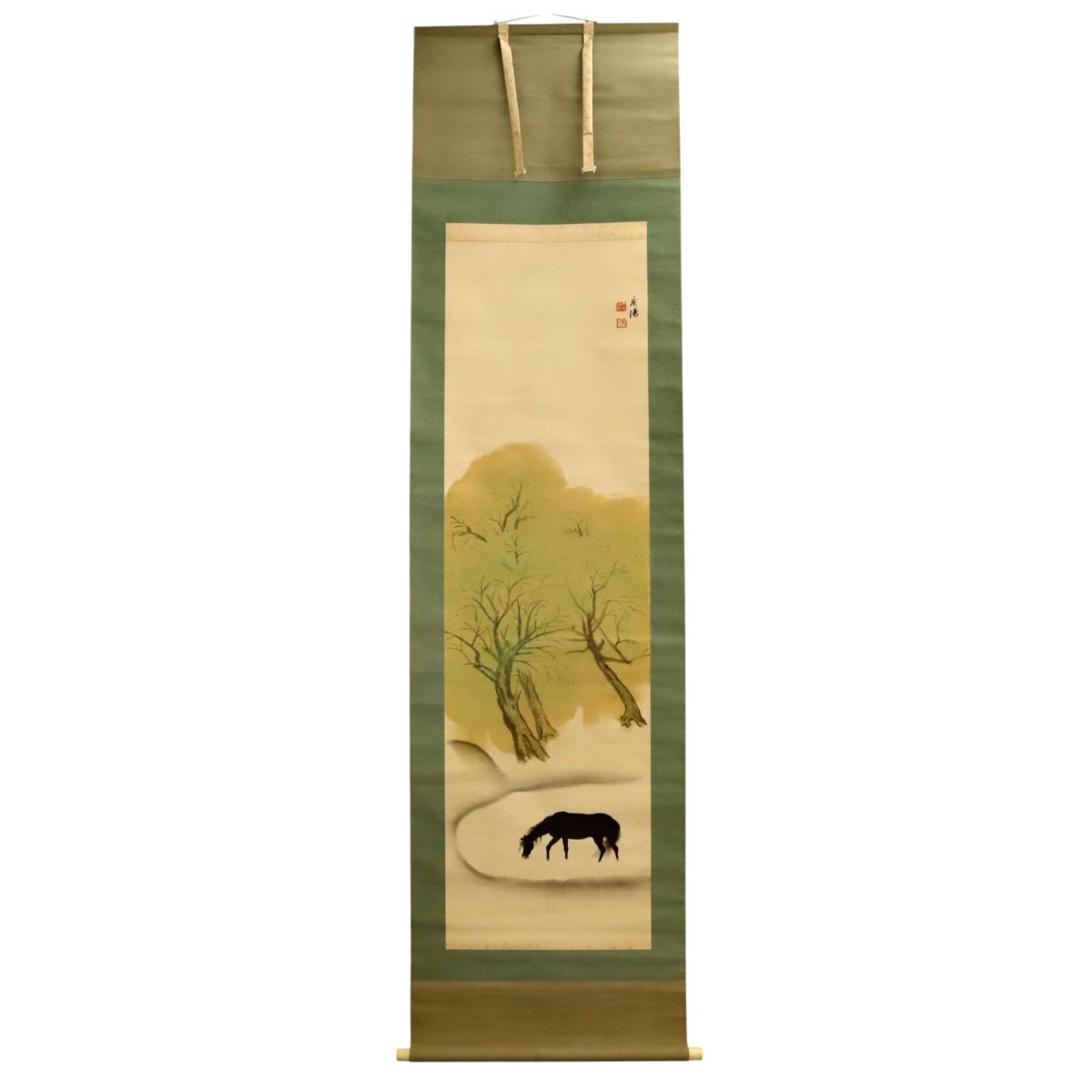 大村廣陽 中夏 緑柳黒馬 掛軸