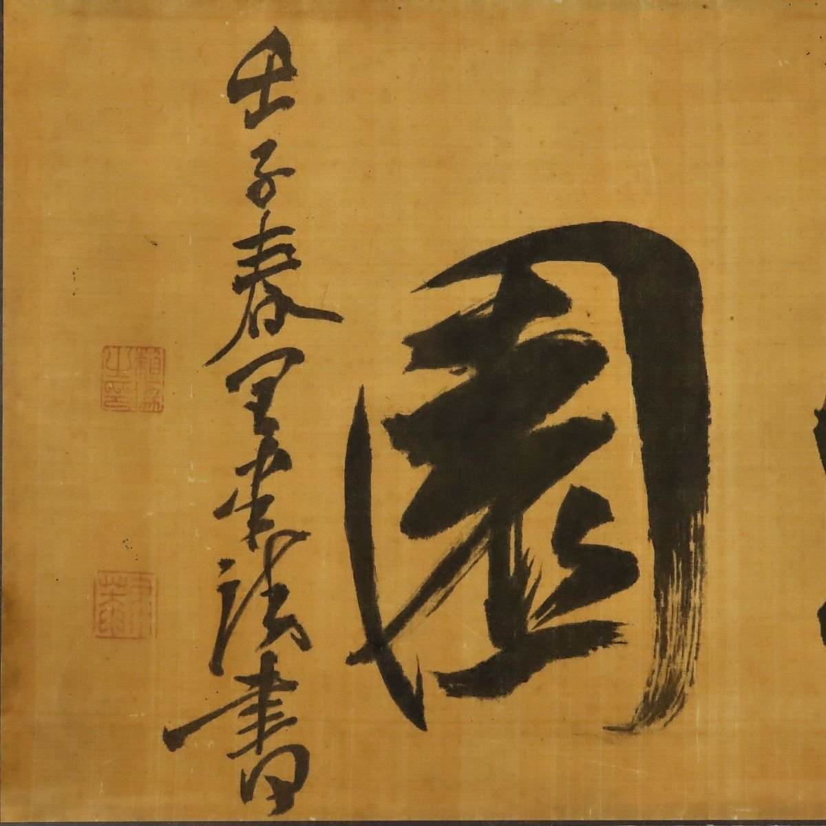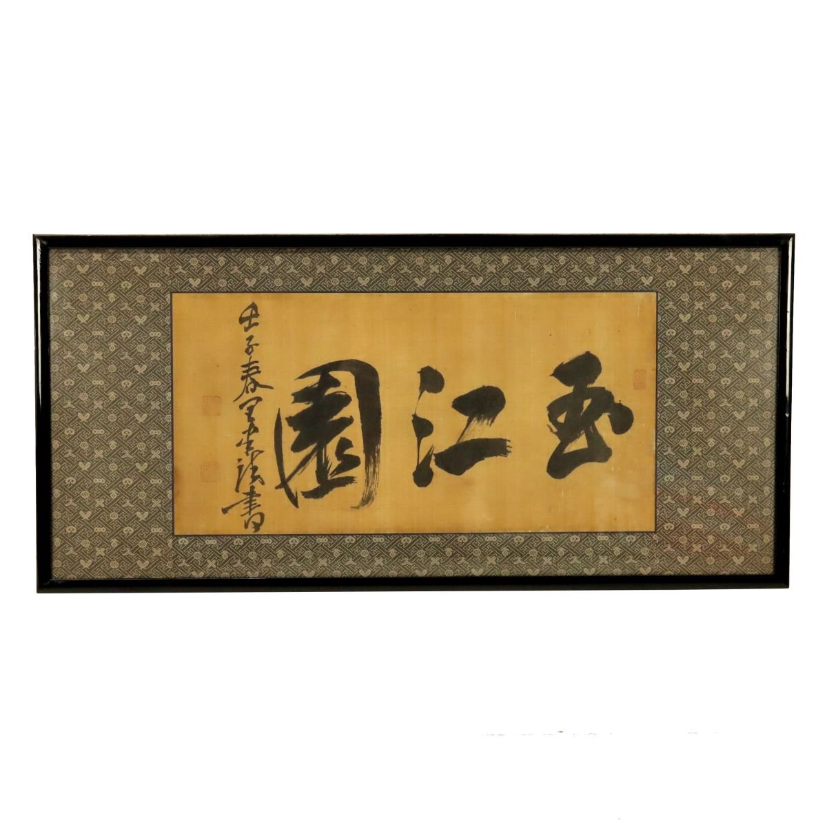 江戸時代後期の備後出身の儒学者・頼聿庵による三字書の扁額で、武田皆山の識および鑑定書を備えた由緒ある一作です。簡潔にして格調高い筆致には頼家学統の精神が表れ、文人書の魅力を端的に伝えます。識と鑑定書を伴う資料性の高さも見逃せない、近世備後文人文化を今に伝える貴重な書画作品です。