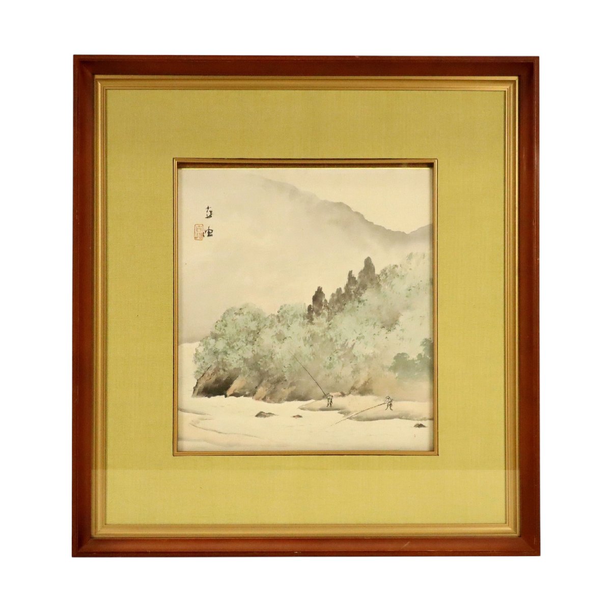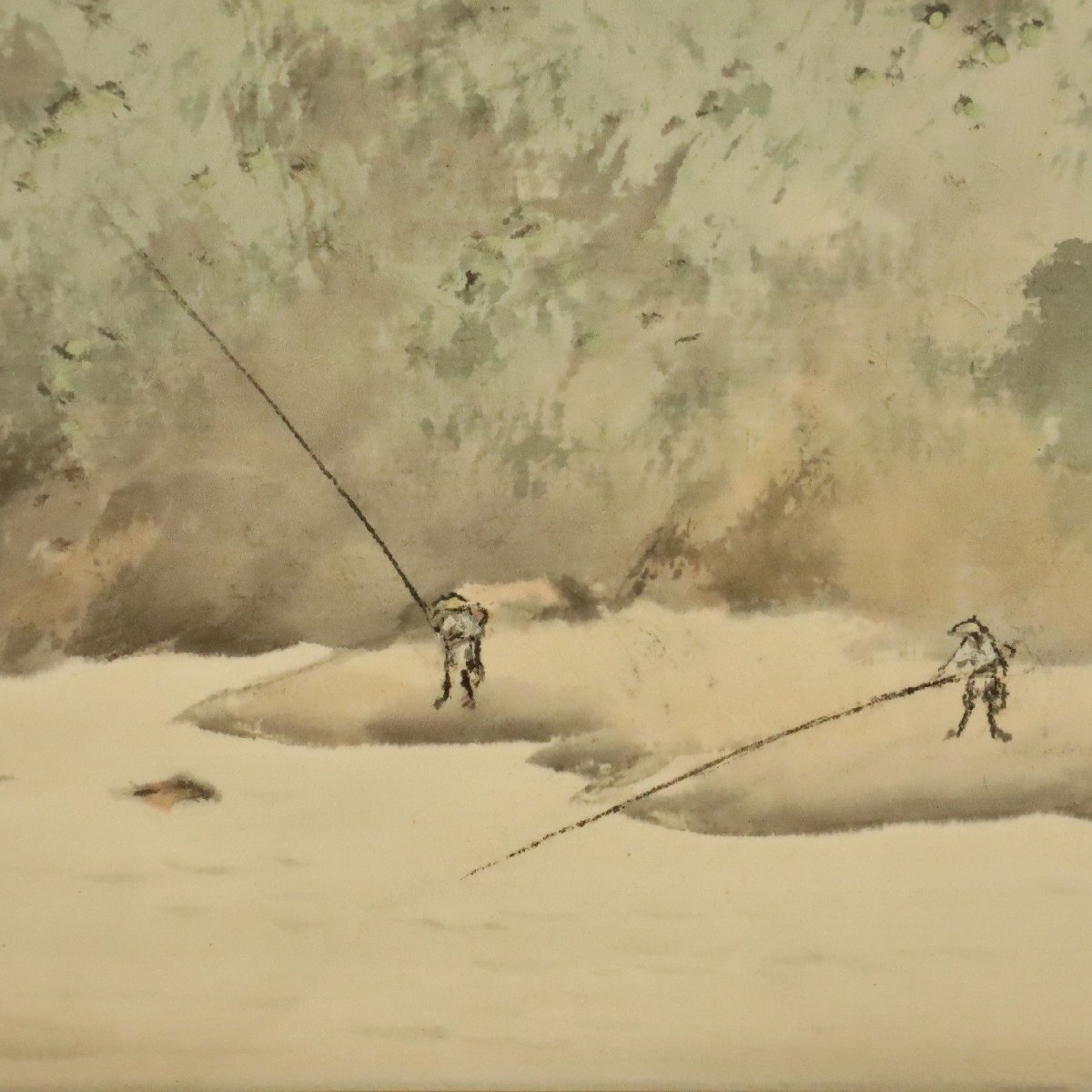 備後ゆかりの画家・佐藤古岫による水彩風景の色紙画です。柔らかな彩色と軽やかな筆致で自然の移ろいを端正に表現し、小品ながら清雅な趣を感じさせる一作。約26×23cmの扱いやすい寸法で飾りやすく、郷土美術の魅力と親しみを伝える資料性・鑑賞性を兼ね備えた骨董書画です。