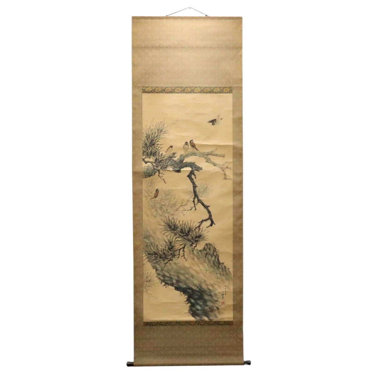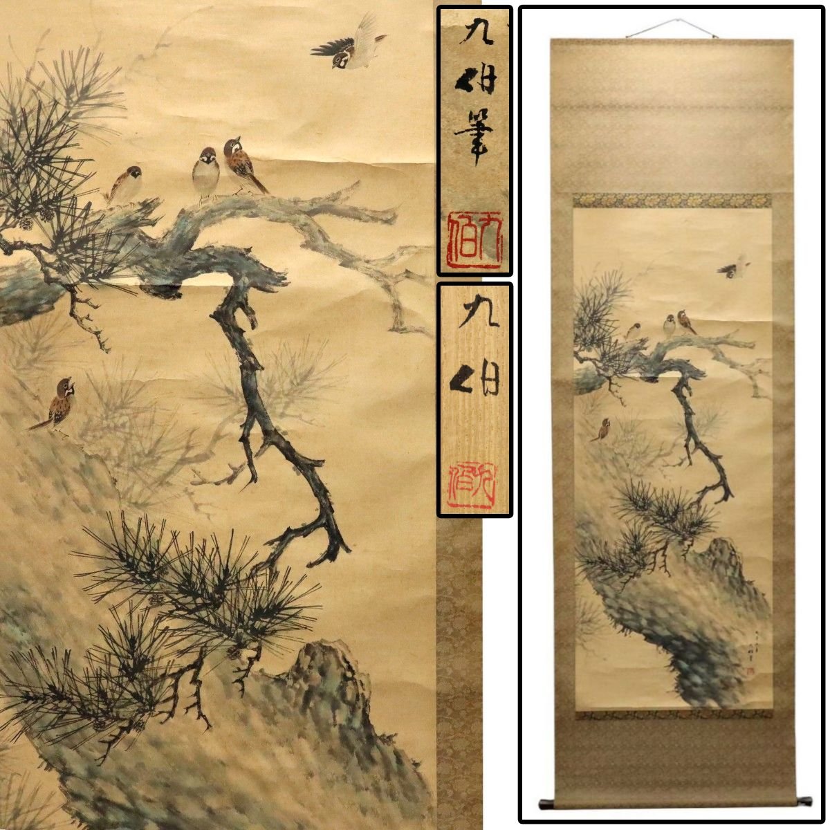 高田九伯 松雀図 掛軸