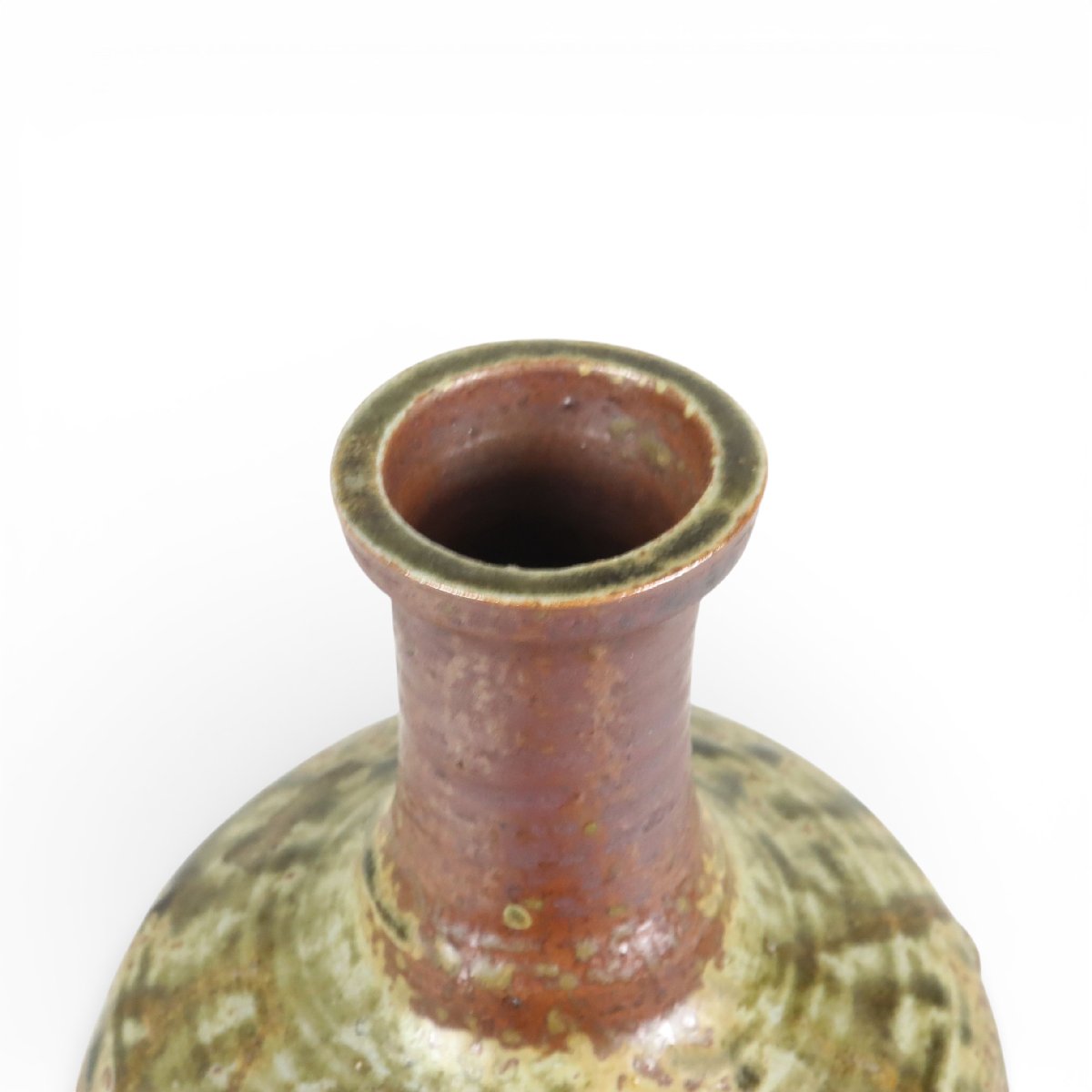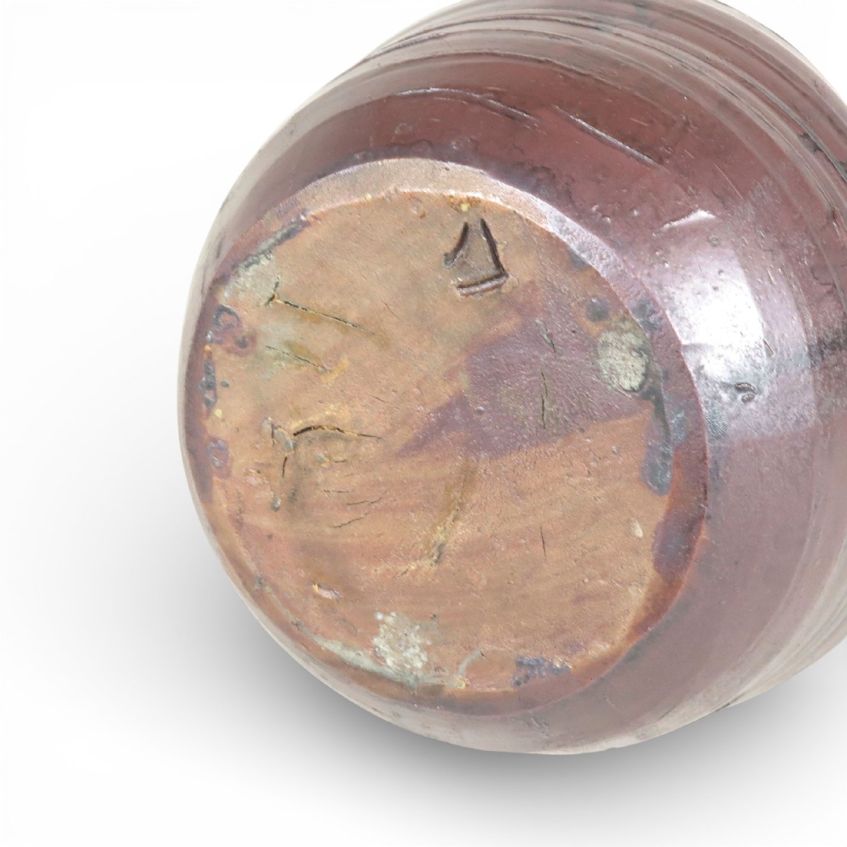 明治初期、広島県福山市・鞆の浦で焼かれた鞆皿山焼の人形徳利です。名産・保命酒を入れる酒器として親しまれた鞆徳利は、素朴な造形と温かみある釉調に地方窯の魅力が凝縮されています。愛嬌ある人形意匠は当時の暮らしと文化を今に伝える貴重な一品です。