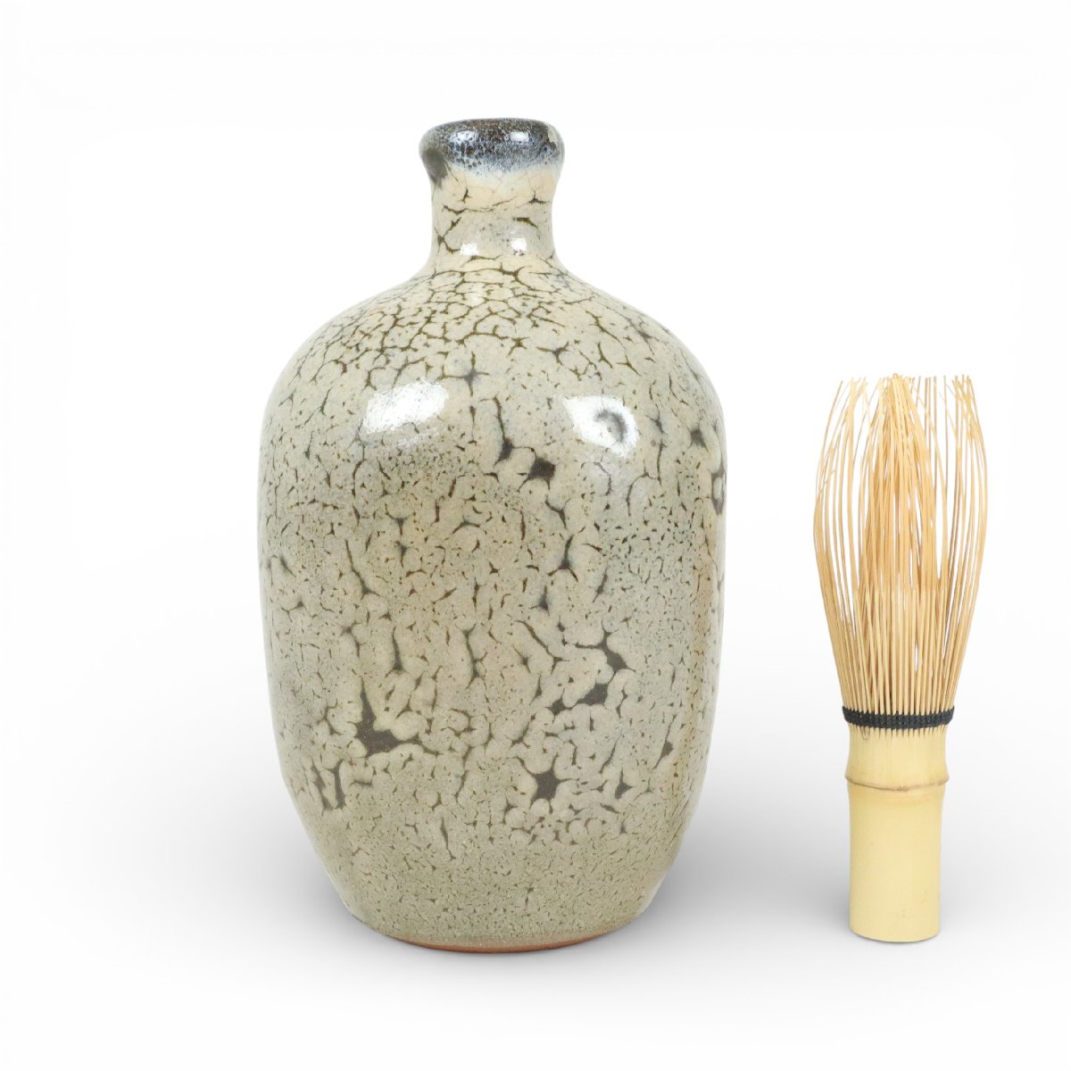 幕末~明治期の鞆皿山焼の蛇の目保命酒徳利は、備後・鞆の浦に伝わる鞆徳利の一例です。口縁に見られる蛇の目意匠が特徴で、保命酒を納めた実用酒器として港町の暮らしを支えました。素朴な土味と端正な造形が調和し、地域文化を今に伝える骨董陶磁器です。