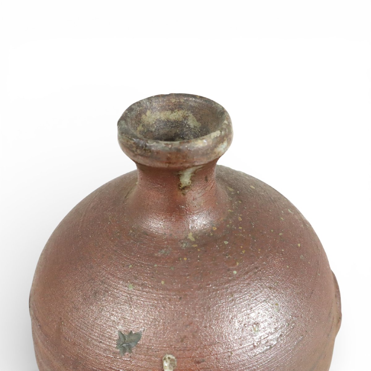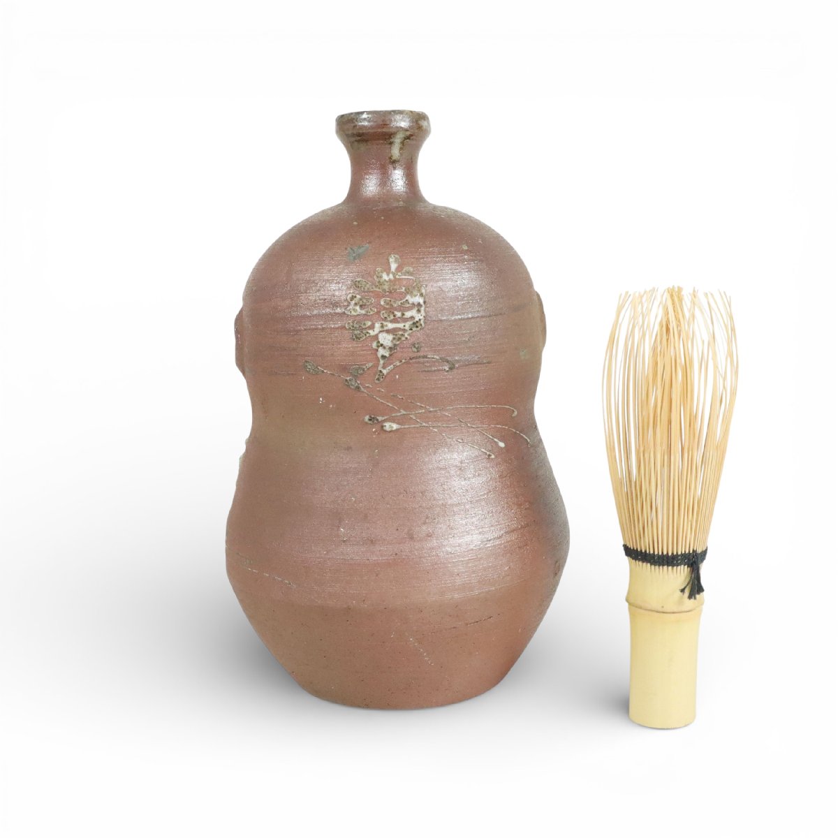 幕末~明治期の鞆皿山焼「かづら通し保命酒徳利」は、備後・鞆の浦に伝わる鞆徳利の希少な作例です。紐を通すためのかづら穴を備えた実用的造形で、保命酒文化と港町の生活を象徴。図録同手掲載の系統に連なる品で、素朴な土味と歴史性が光る骨董陶磁器です。
