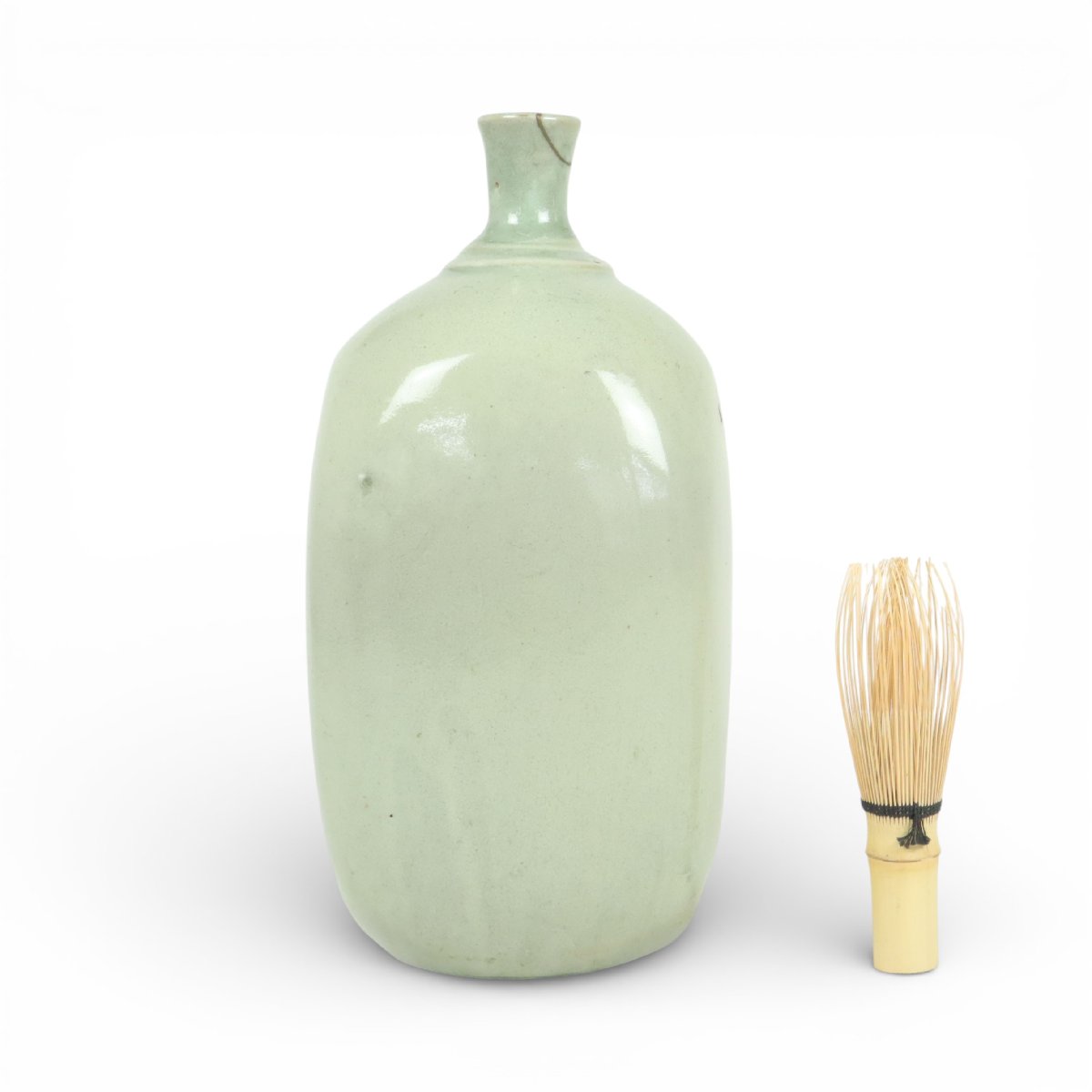 幕末から明治期にかけて広島県福山市・鞆の浦周辺で焼かれた鞆皿山焼・岩谷焼の保命酒徳利です。備後名産の薬味酒を収める実用器として生まれ、素朴な土味と柔らかな釉調に地方窯の風趣が宿ります。往時の港町文化を今に伝える趣深い酒器です。