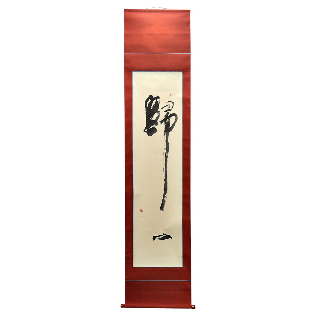 備後・福山市ゆかりの書家・八樹青舎による紙本書掛軸。共箱付の骨董書画で、端正な筆致と余白の美が調和し、格調高い床の間空間を演出する希少な美術品です。凛とした墨線と静謐な構成は近代書の系譜を感じさせ、収蔵・茶席装飾にも適した逸品です。